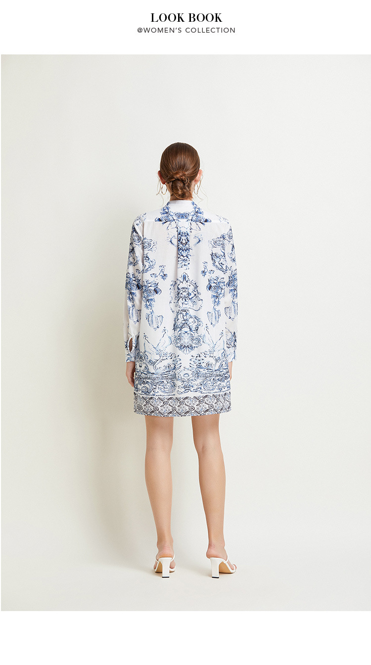 2024 대외 무역 유럽과 미국 여성의 인쇄 된 세트 여름 여성 캐주얼 착용 스탠드 칼라 비대칭 셔츠 투피스 세트