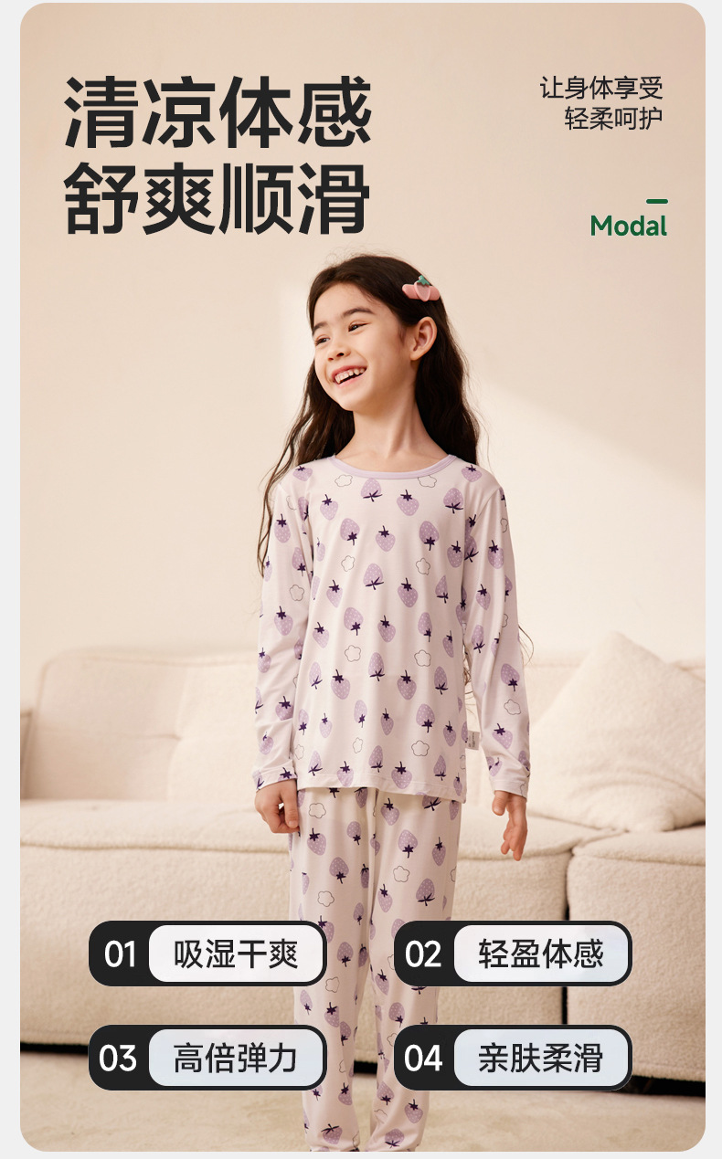 24 가을 소녀 가을 옷과 바지 모달 긴 소매 아기 홈 의류 세트 캐주얼 소녀 잠옷 중 큰 어린이