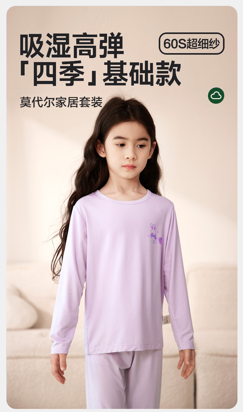 24 가을 소녀 가을 옷과 바지 모달 긴 소매 아기 홈 의류 세트 캐주얼 소녀 잠옷 중 큰 어린이스토어 가기