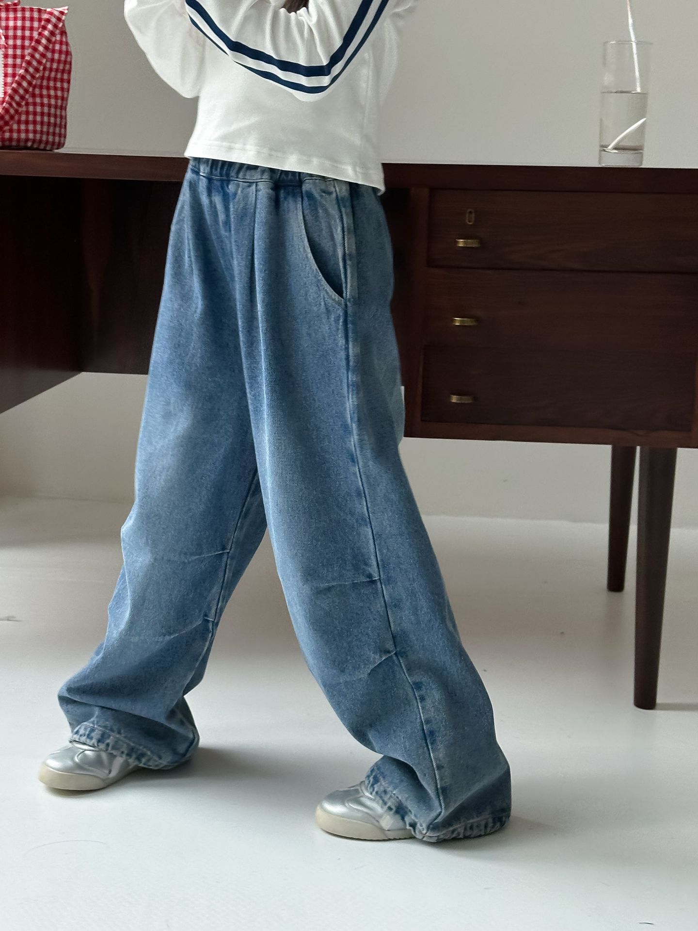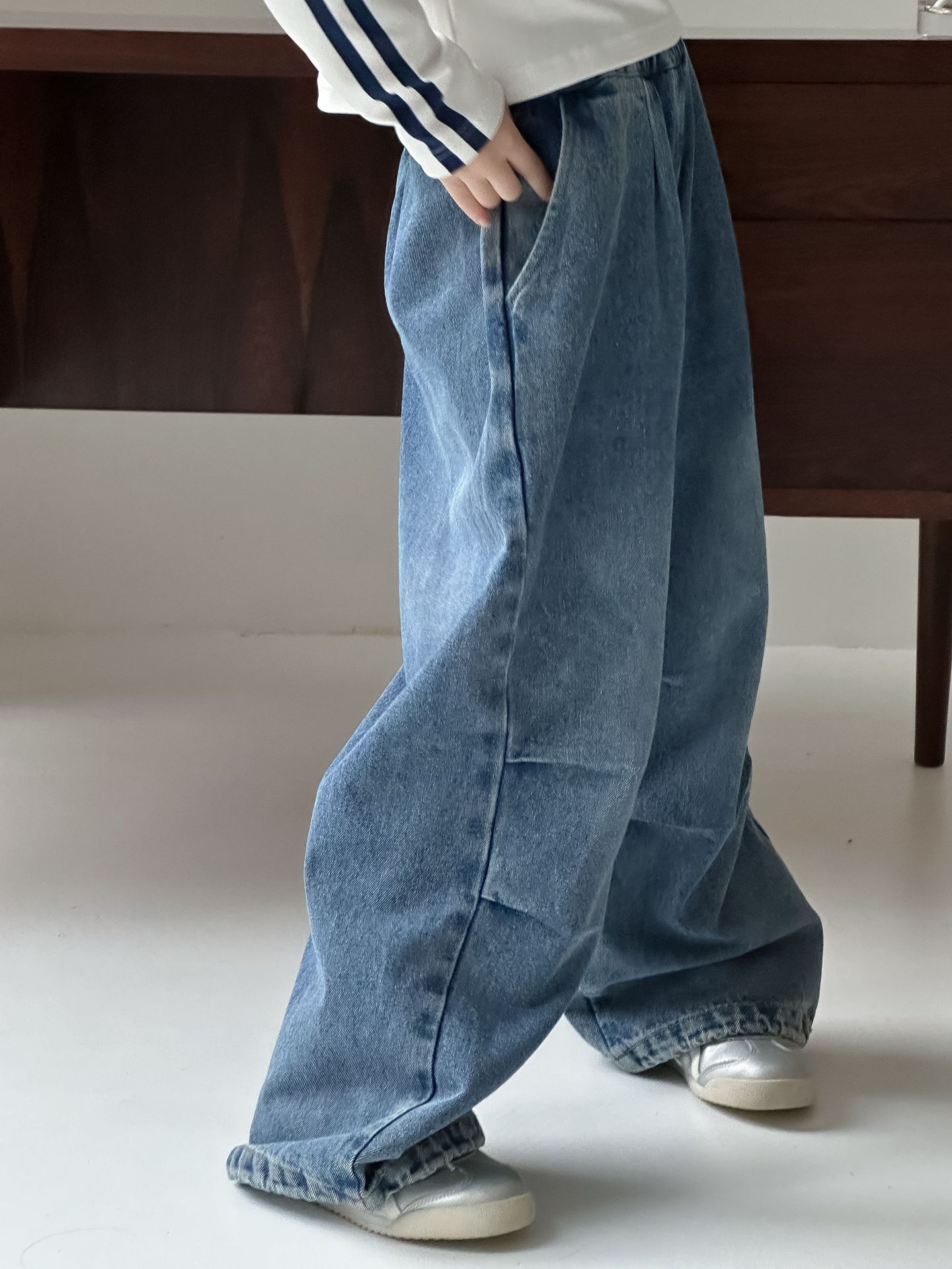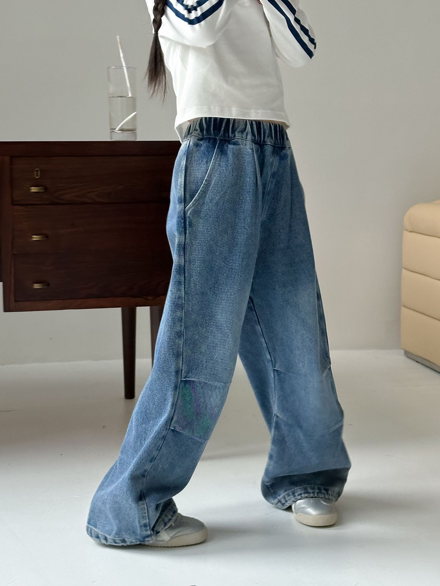 어린이 바지 2024 가을 어린이 유행 청바지 중년 어린이 중립 스타일 성격 느슨한 바지 소년 소녀스토어 가기
