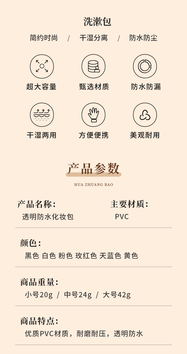 도매 투명 화장품 가방 PVC 화장실 가방 간단한 휴대용 여행 방수 대용량 휴대용 저장 가방 가공