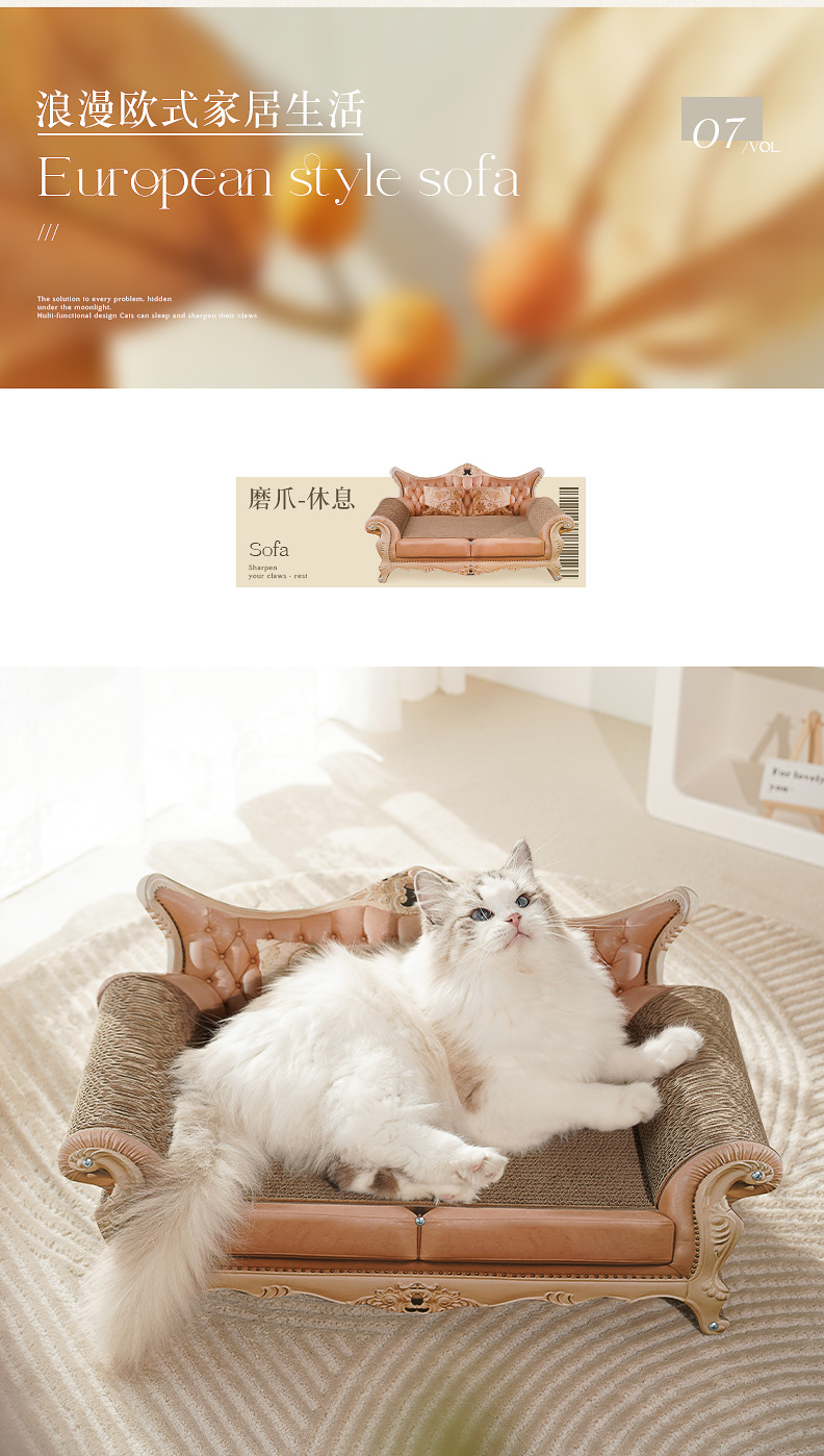 • 레트로 소파 골판지 고양이 긁는 기둥
