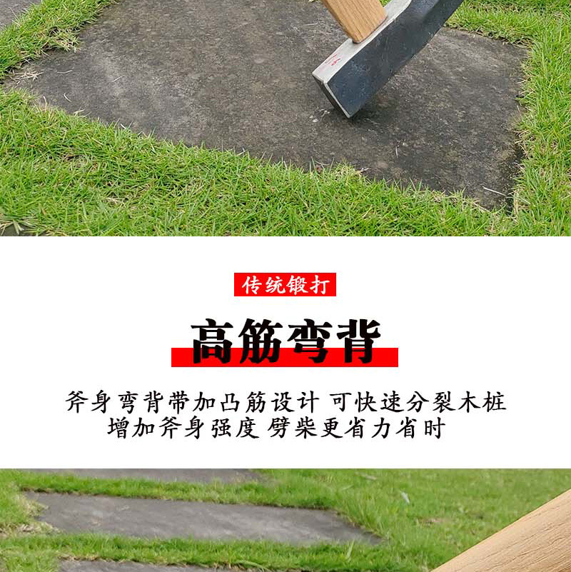 • 4kg 단조 등 늑골 곡선 나무 도끼 [단일 머리]]