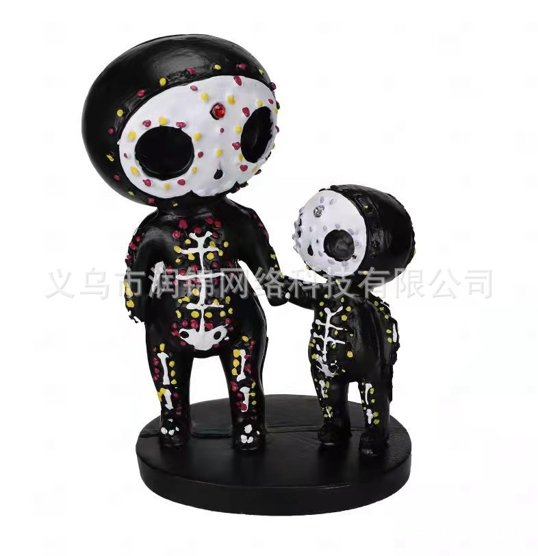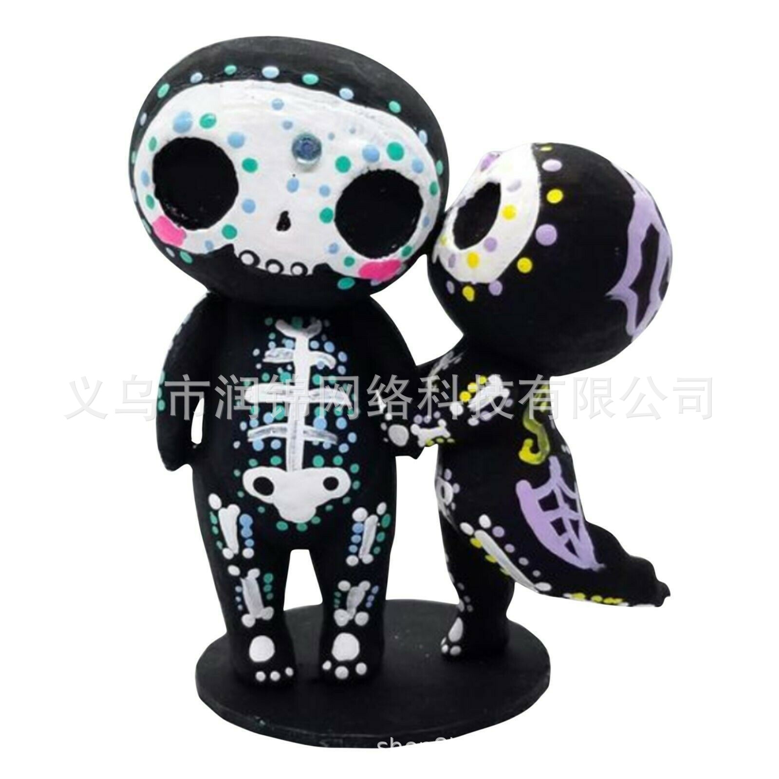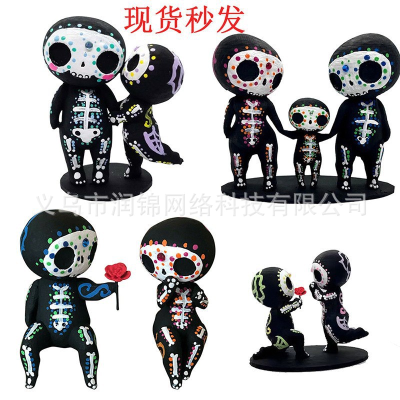 수제 페인트 수지 공예 발렌타인 데이 꽃 두개골 머리 커플 부모-자녀 키스 홀드 동상 꽃 익스프레스스토어 가기