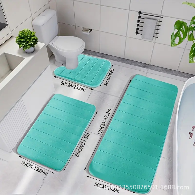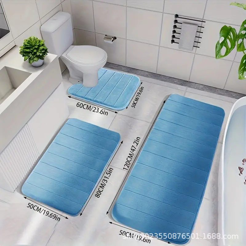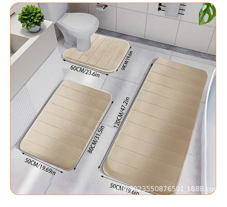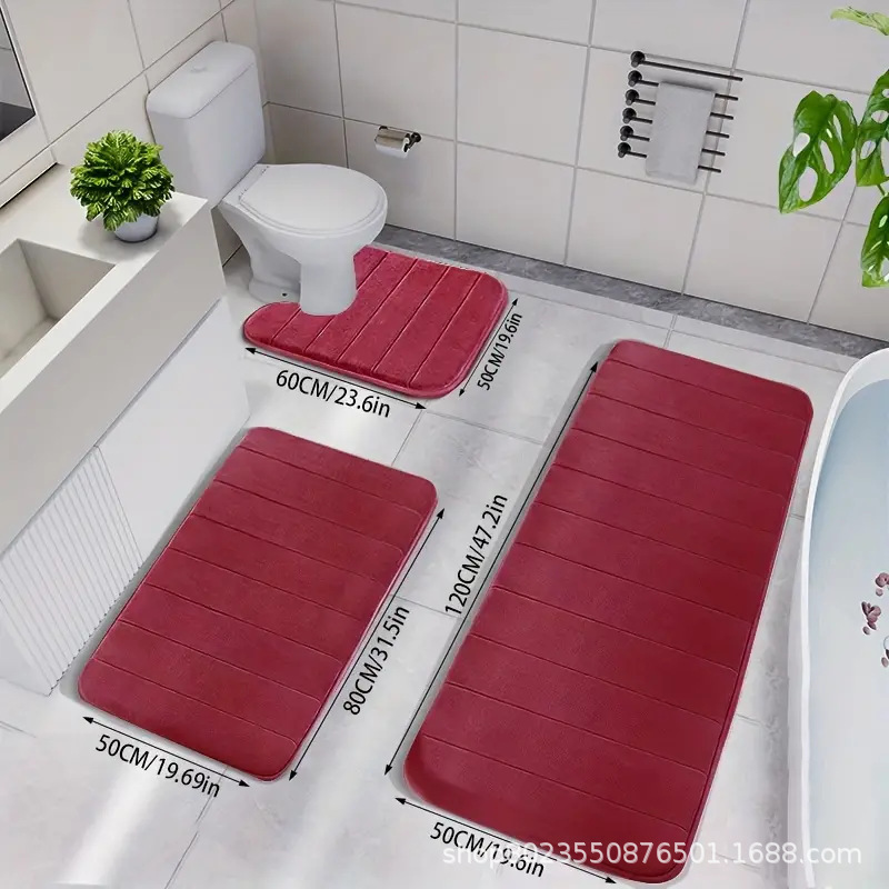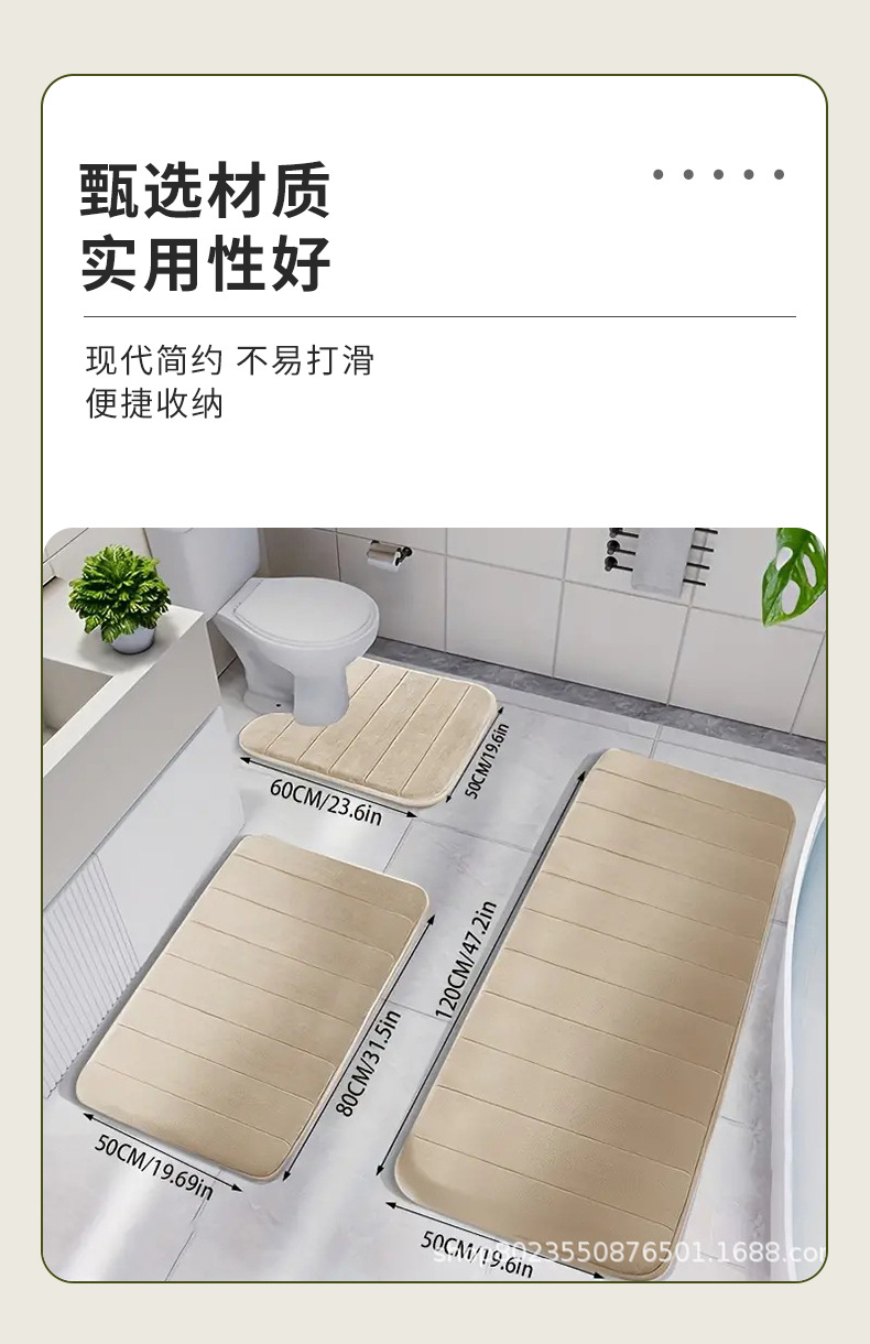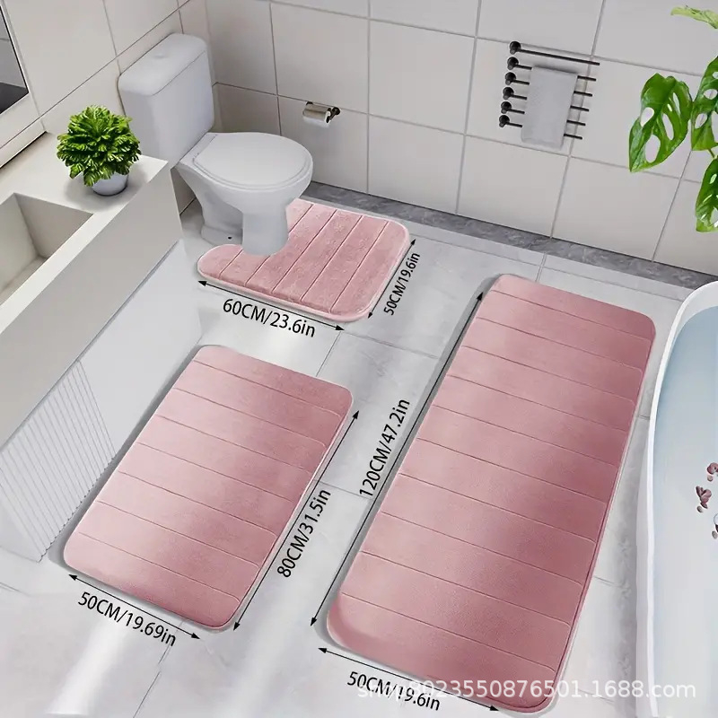 국경 간 폭발 TEMU 퀼트 욕실 3 피스 화장실 물 흡수성 미끄럼 방지 매트 산호 양털 매트 카펫스토어 가기