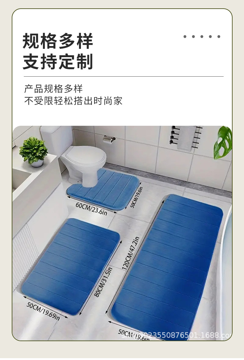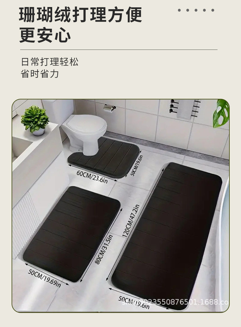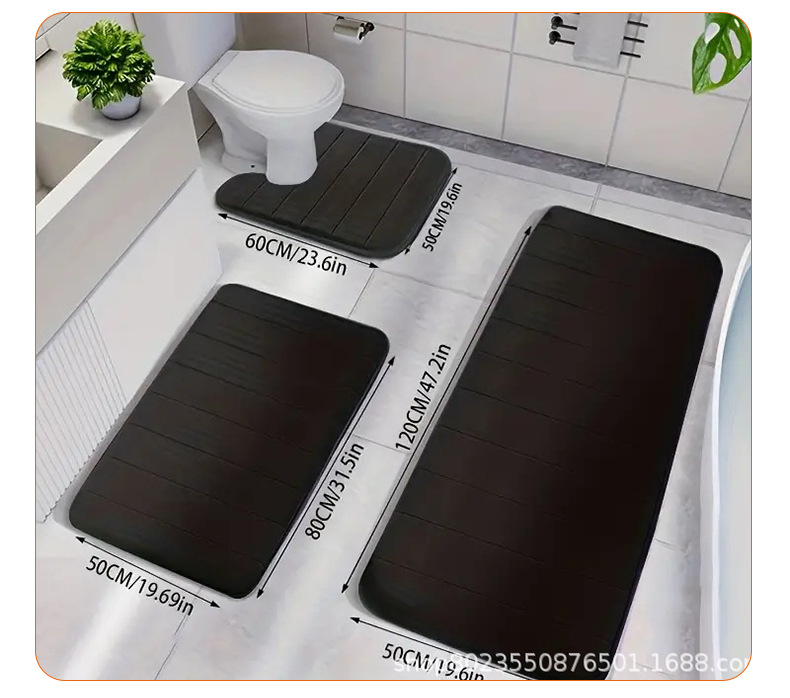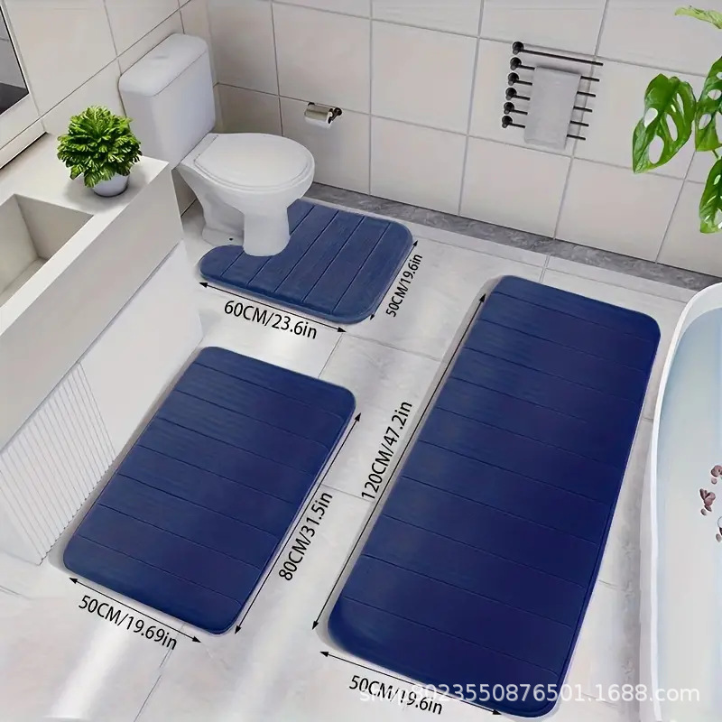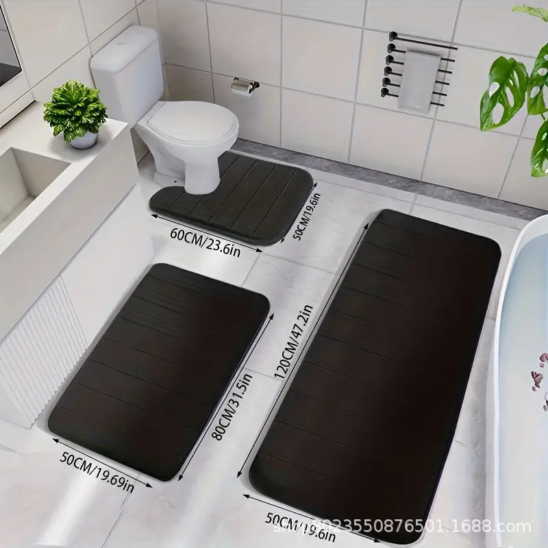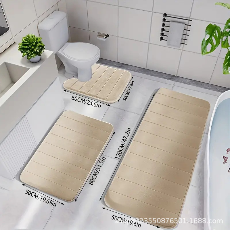 국경 간 폭발 TEMU 퀼트 욕실 3 피스 화장실 물 흡수성 미끄럼 방지 매트 산호 양털 매트 카펫스토어 가기
