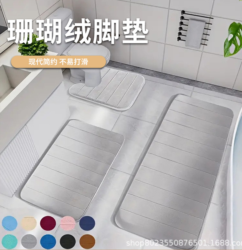 국경 간 폭발 TEMU 퀼트 욕실 3 피스 화장실 물 흡수성 미끄럼 방지 매트 산호 양털 매트 카펫
