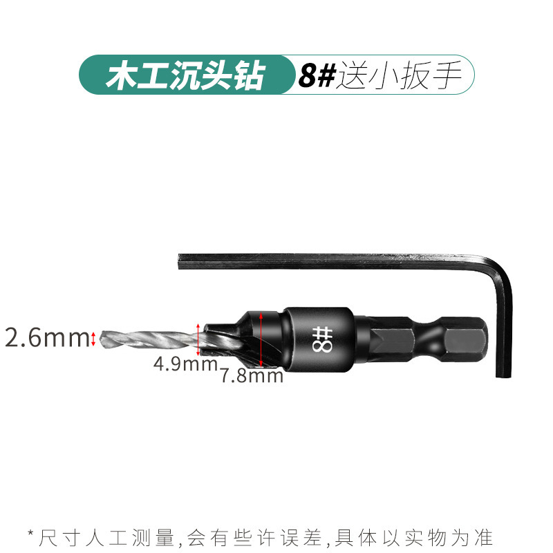 • 실버 목공 접시 머리 드릴 + 렌치 4개 세트