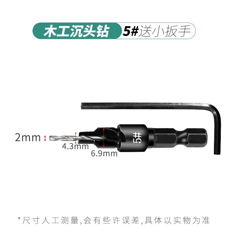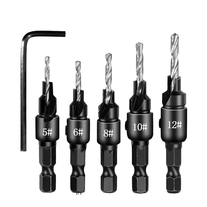 • 실버 목공 접시 머리 드릴 + 렌치 5개 세트