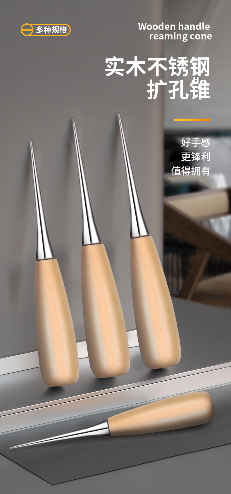 송곳 바늘 올 스틸 나무 손잡이 두꺼운 솔리드 구식 대형 펀치 핸드 메이드 신발 DIY 가죽 도구