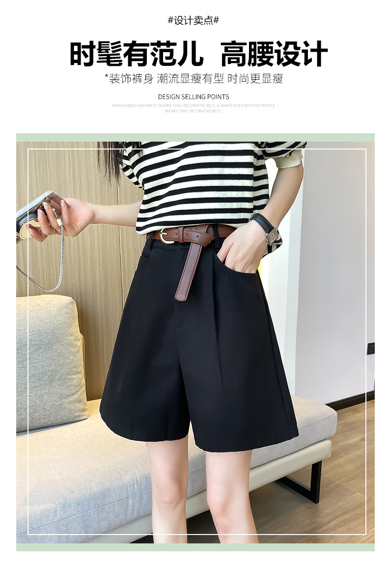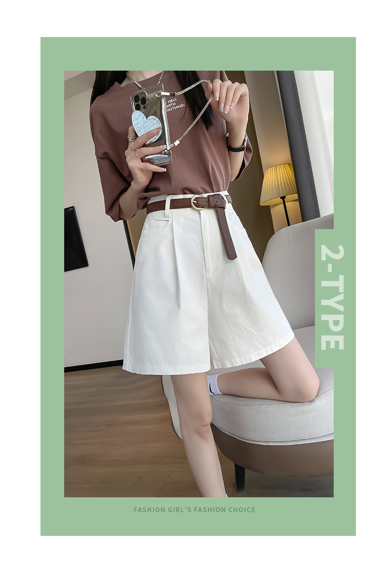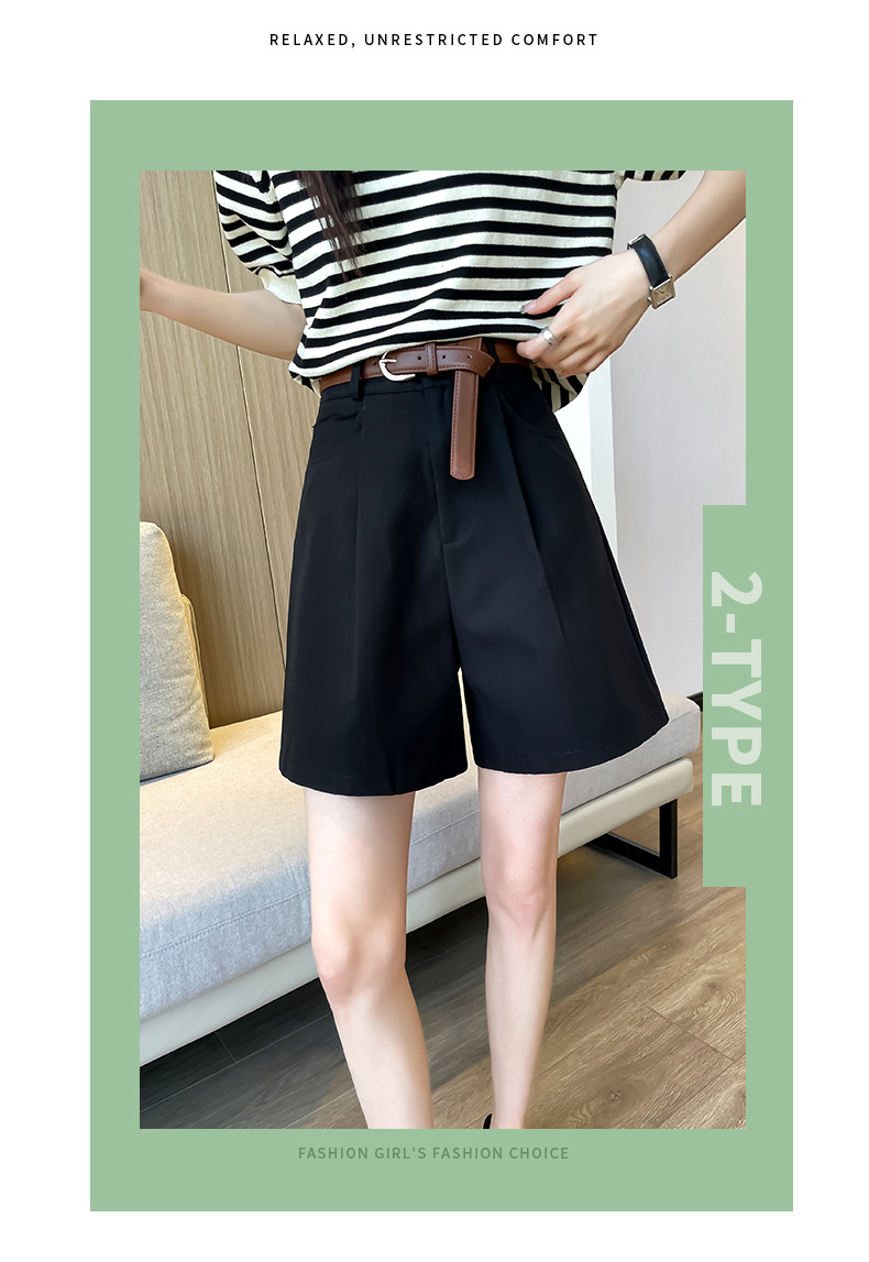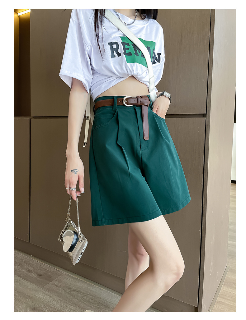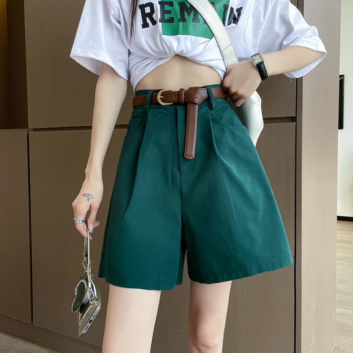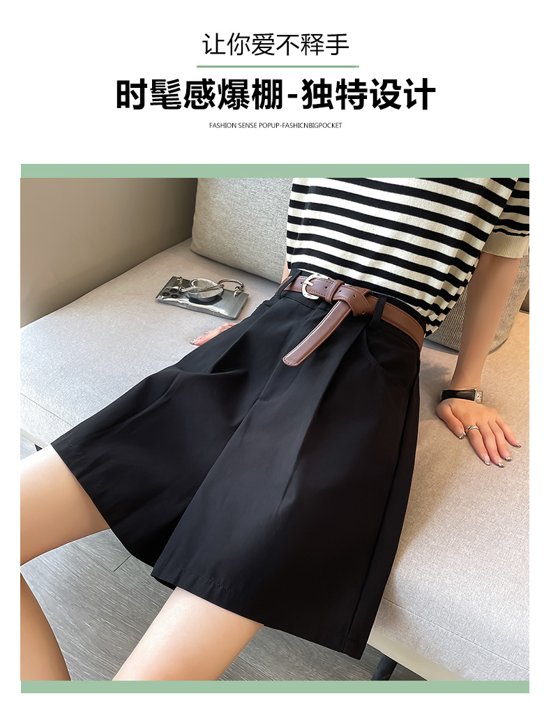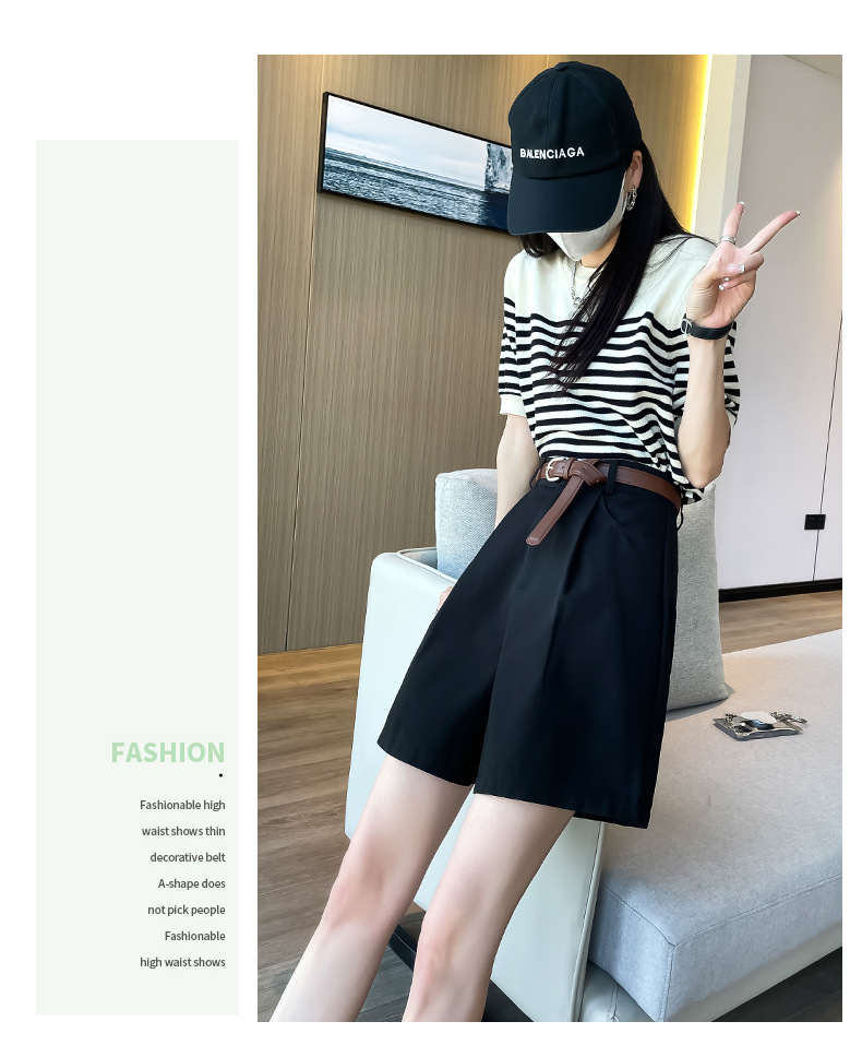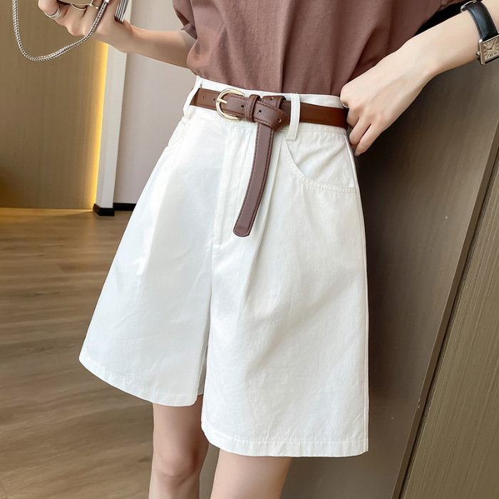 코튼 벨트 세트 반바지 여성 여름 얇은 높은 허리 슬리밍 간단한 서양 스타일 느슨한 캐주얼 와이드 다리 바지