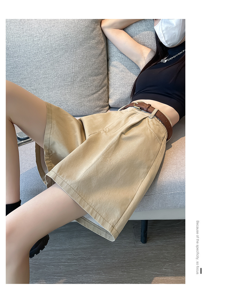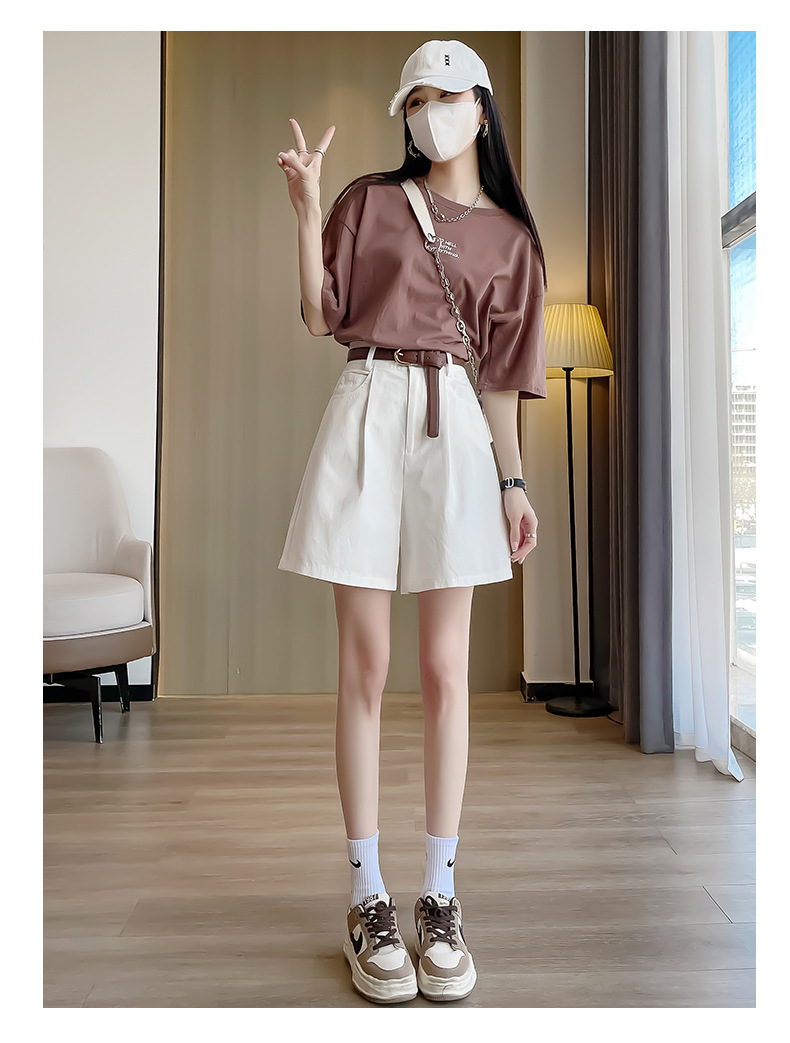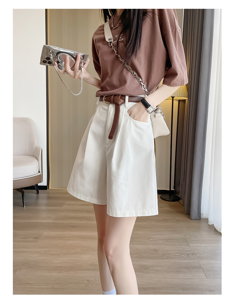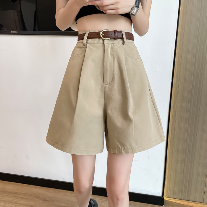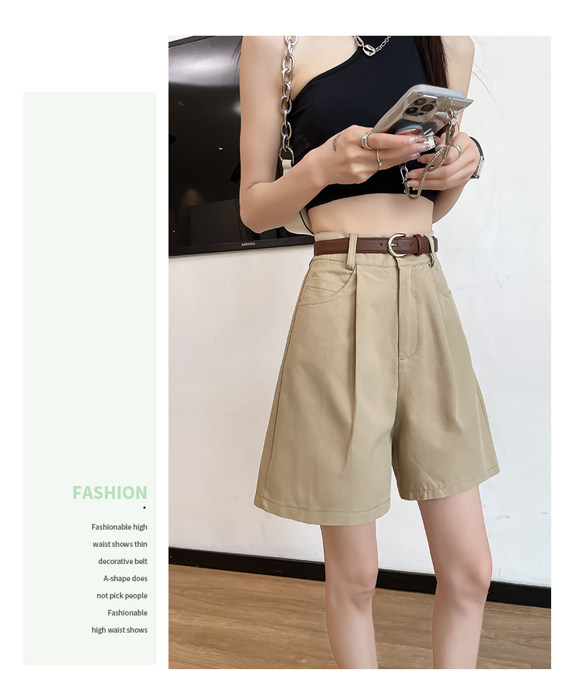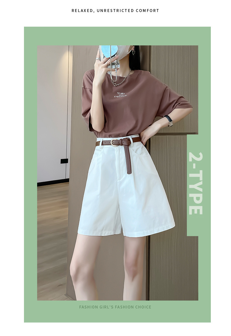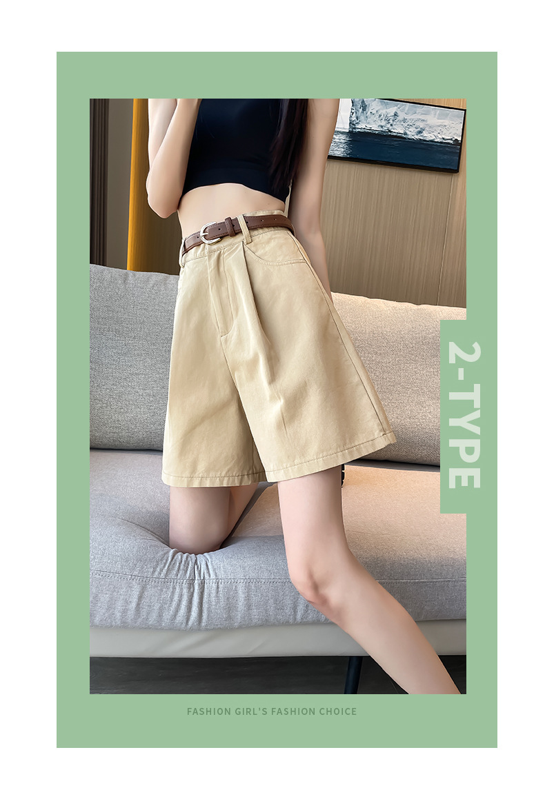 코튼 벨트 세트 반바지 여성 여름 얇은 높은 허리 슬리밍 간단한 서양 스타일 느슨한 캐주얼 와이드 다리 바지