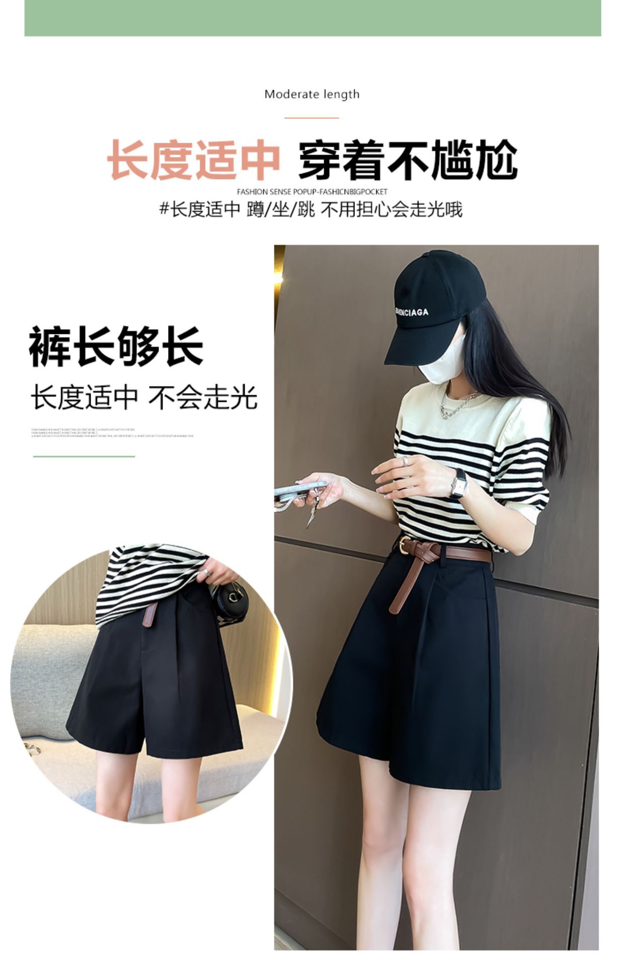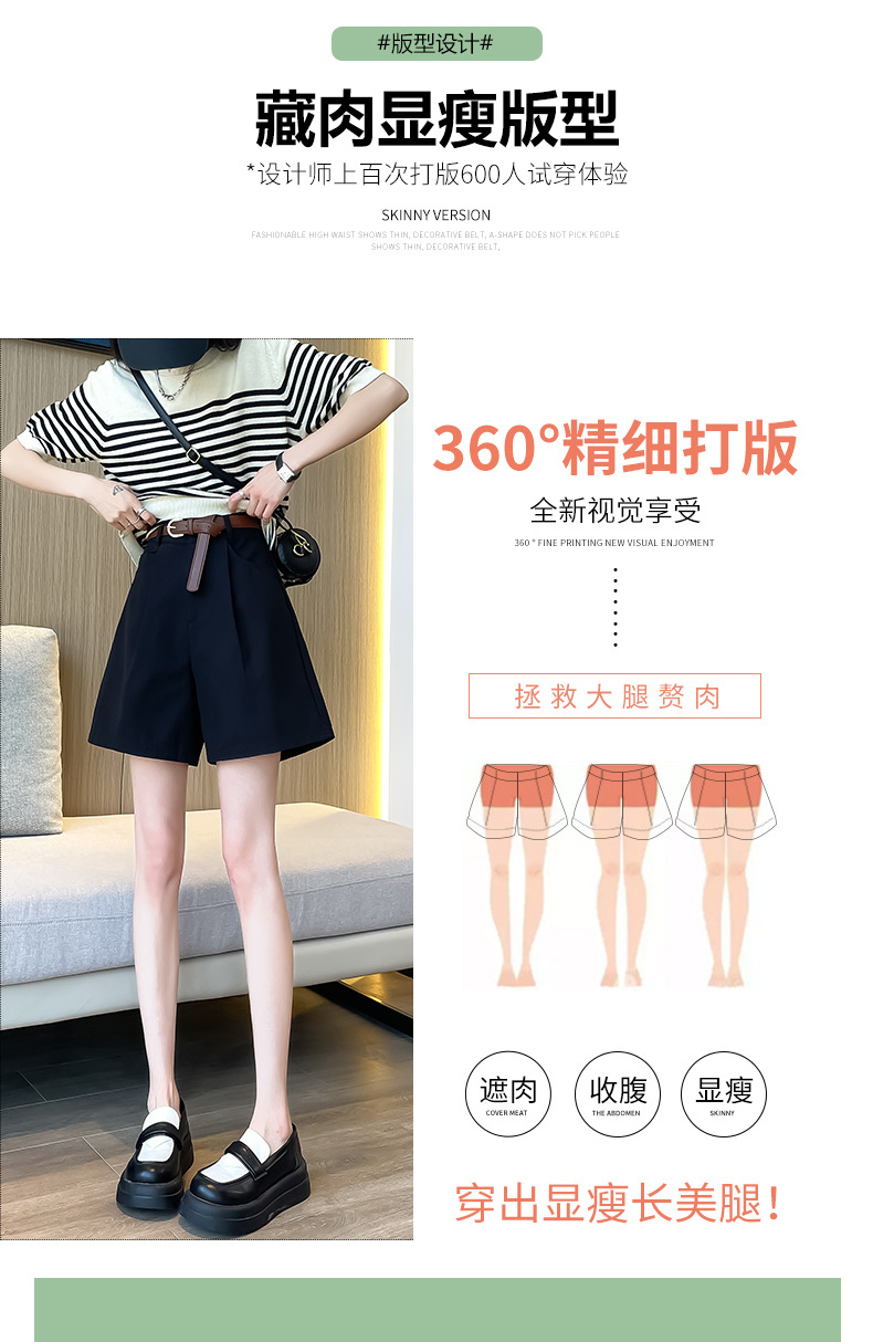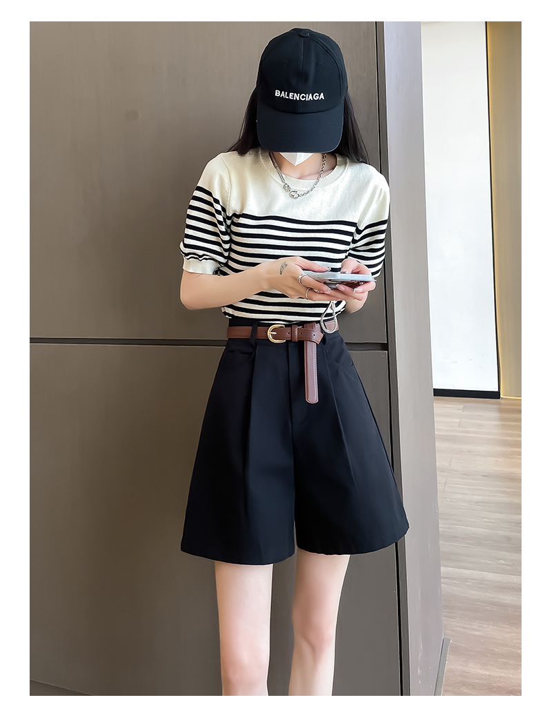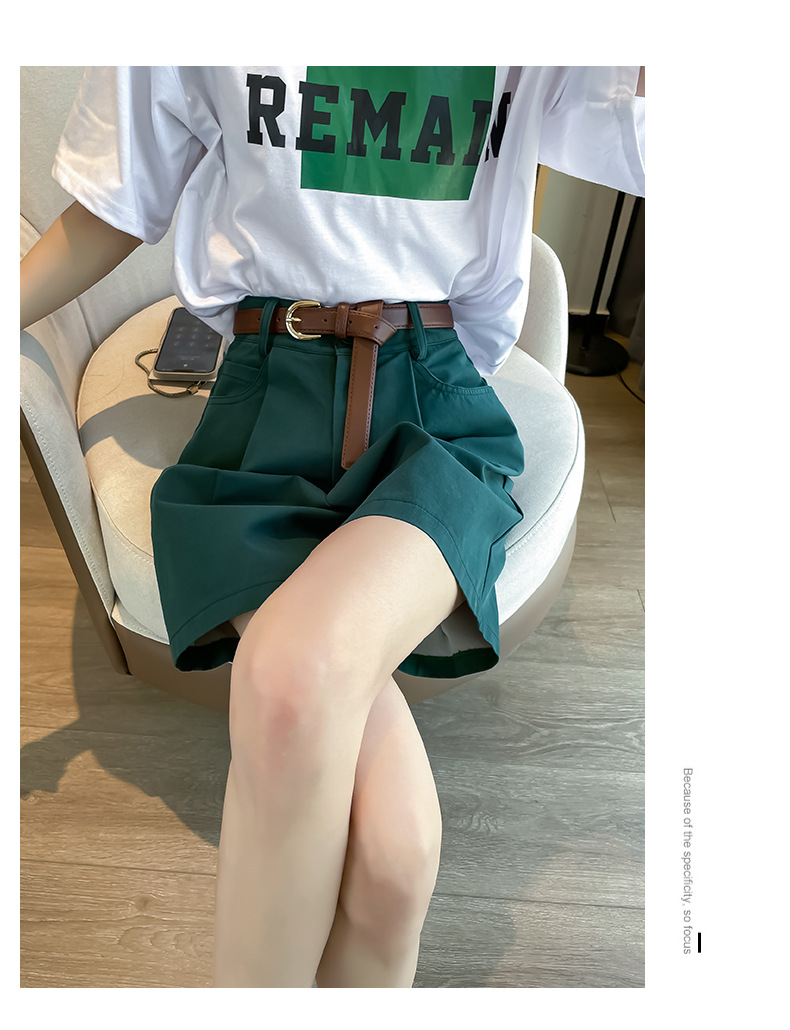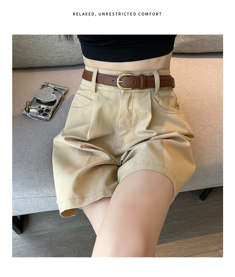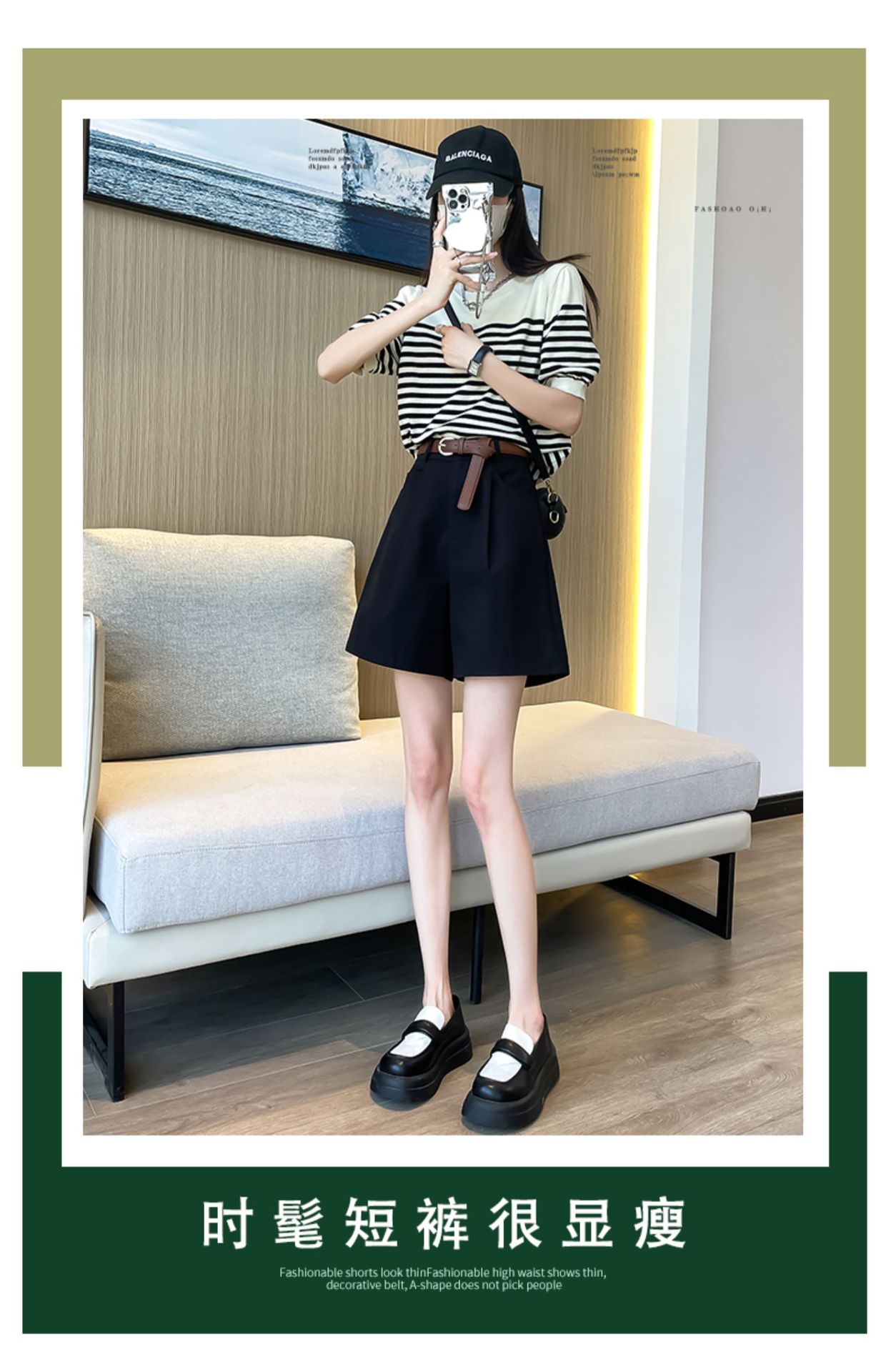 코튼 벨트 세트 반바지 여성 여름 얇은 높은 허리 슬리밍 간단한 서양 스타일 느슨한 캐주얼 와이드 다리 바지