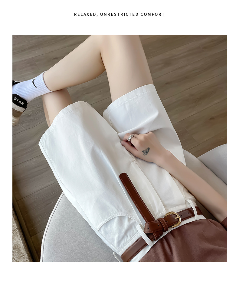 코튼 벨트 세트 반바지 여성 여름 얇은 높은 허리 슬리밍 간단한 서양 스타일 느슨한 캐주얼 와이드 다리 바지스토어 가기