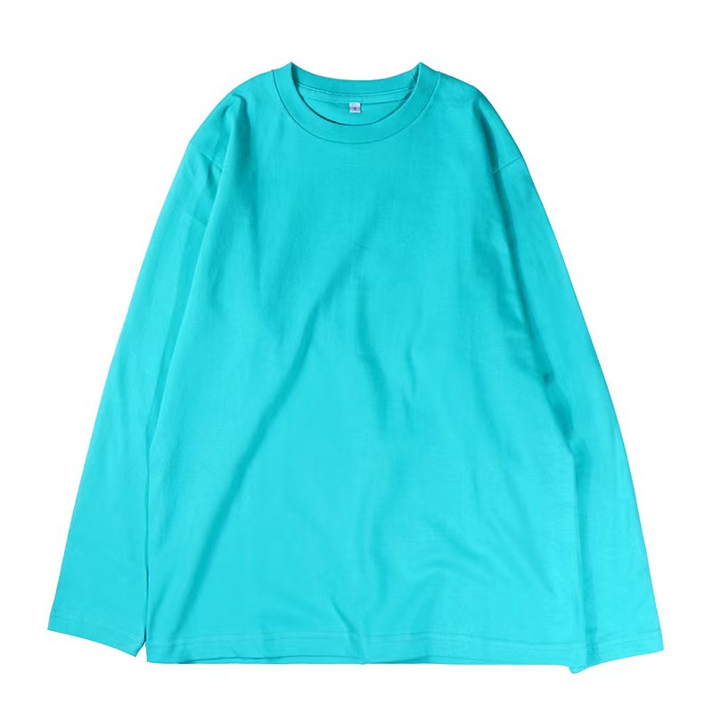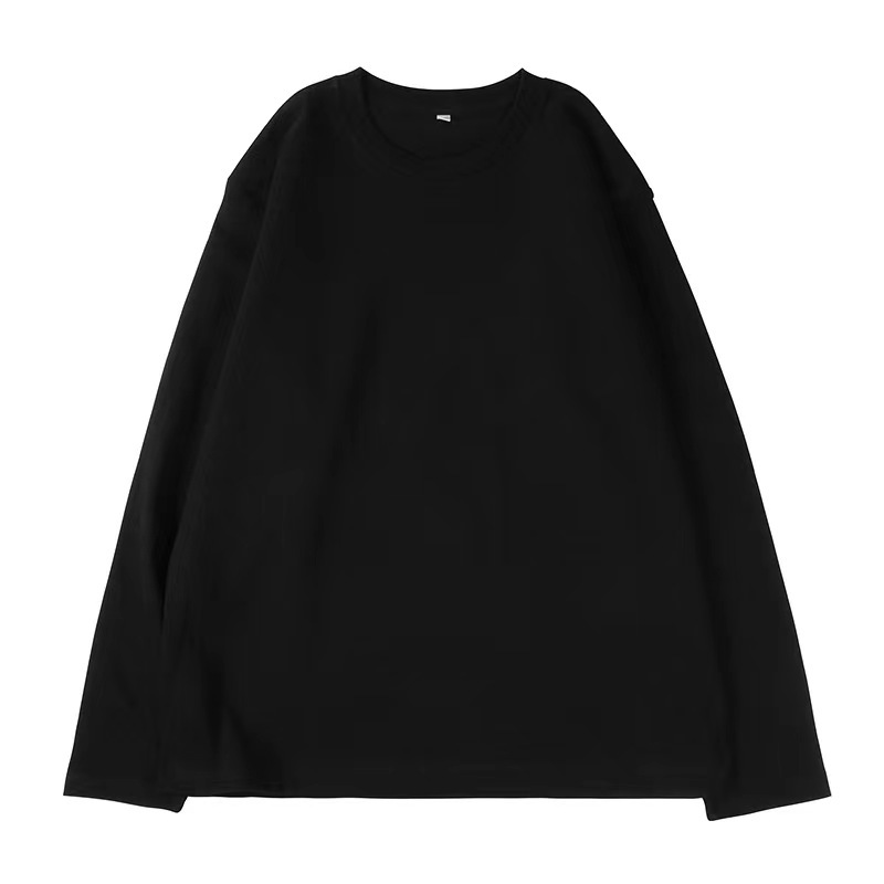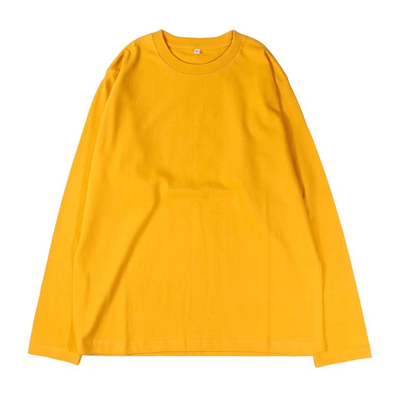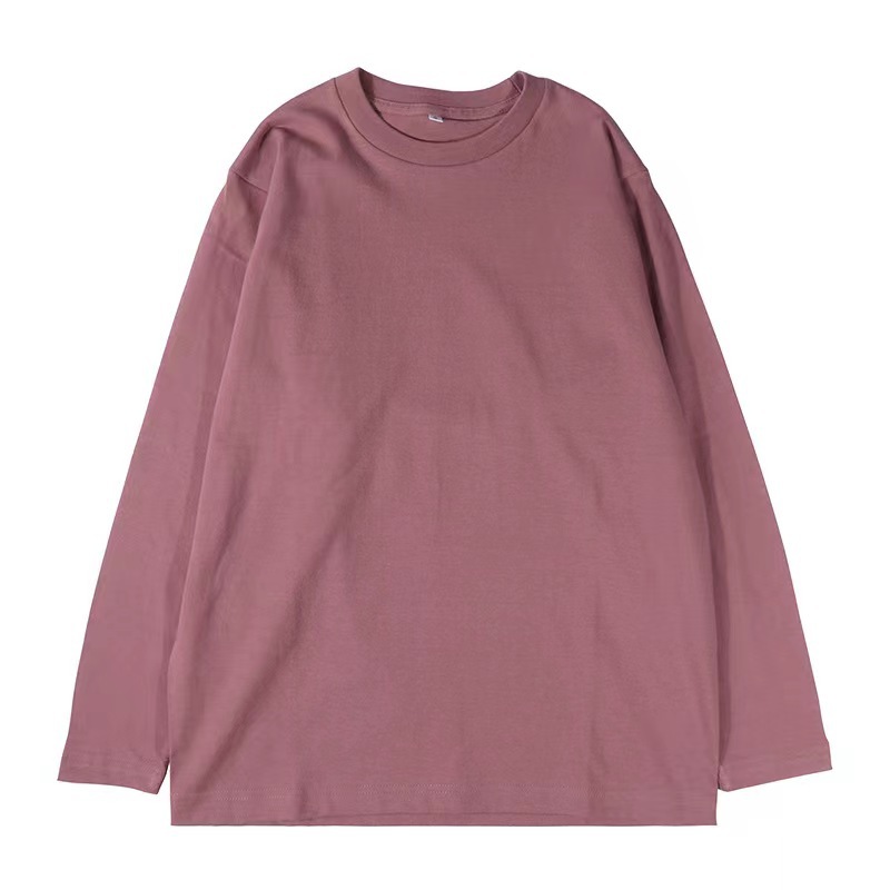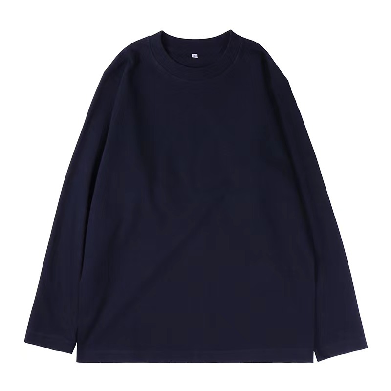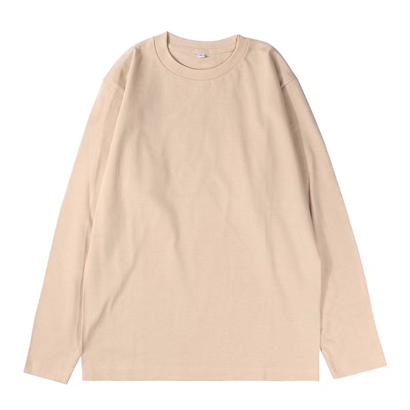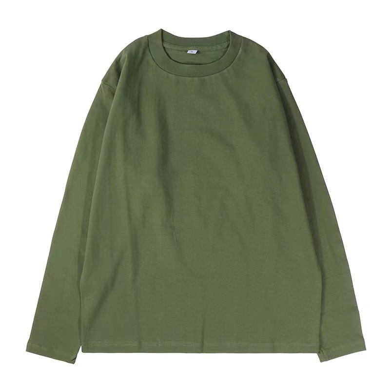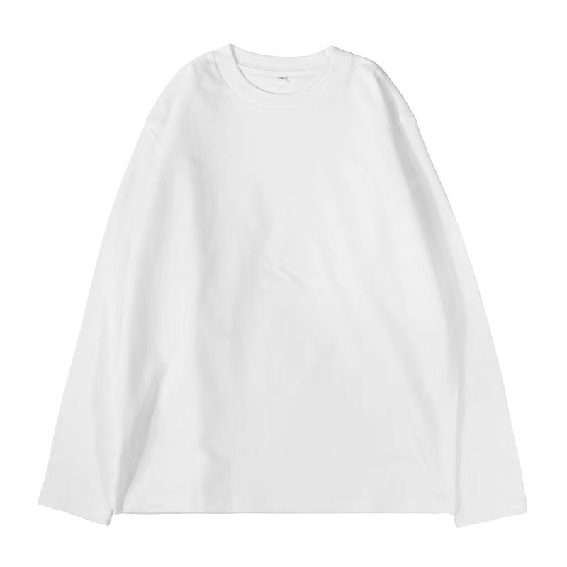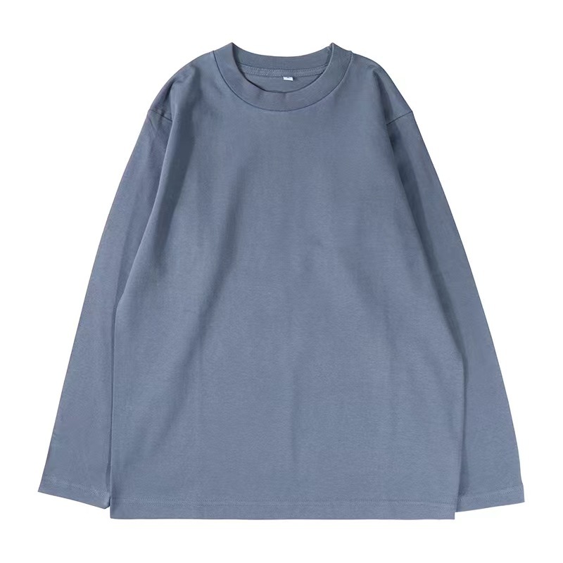 가을 230g 빗 코튼 솔리드 컬러 심플 남자 헤비 올 매치 트렌드 뉴 롱 슬리브 라운드 넥 티셔츠스토어 가기