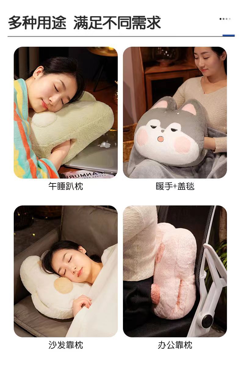 봉제 장난감 에어컨 퀼트 만화 귀여운 손 따뜻한 사계절 베개 퀼트 베개 사무실 이중 사용 투인원 낮잠 담요
