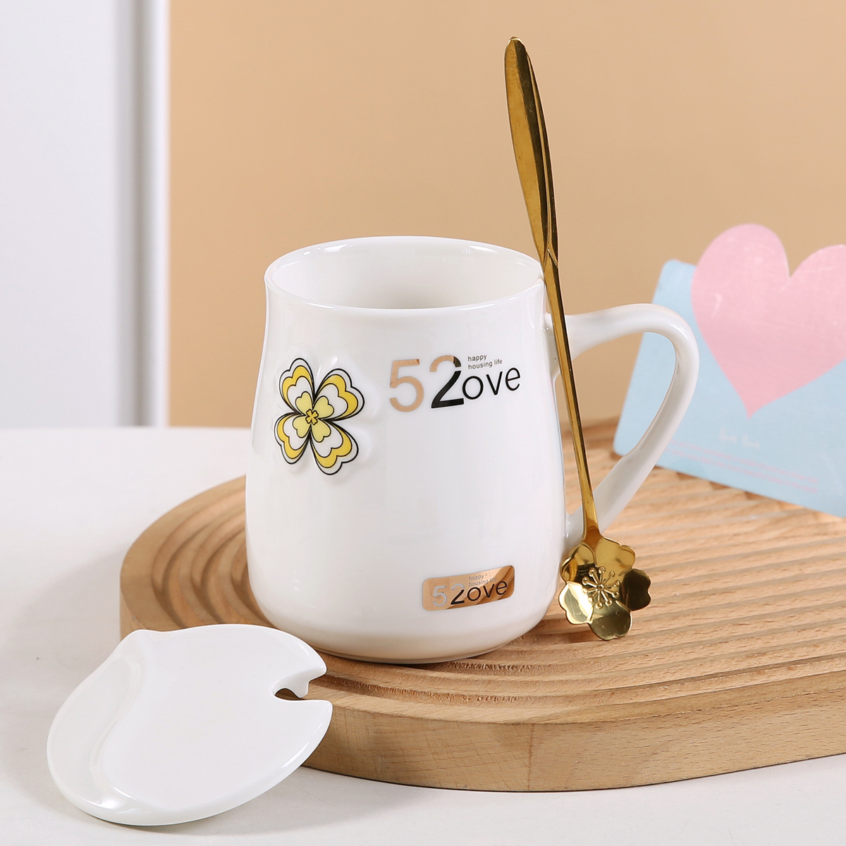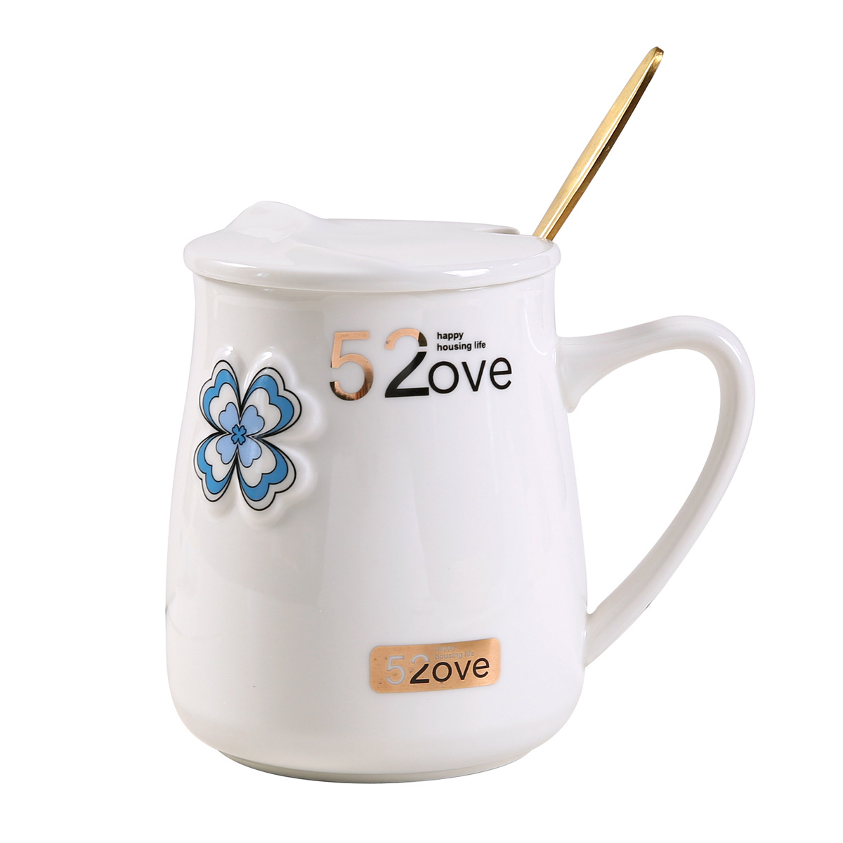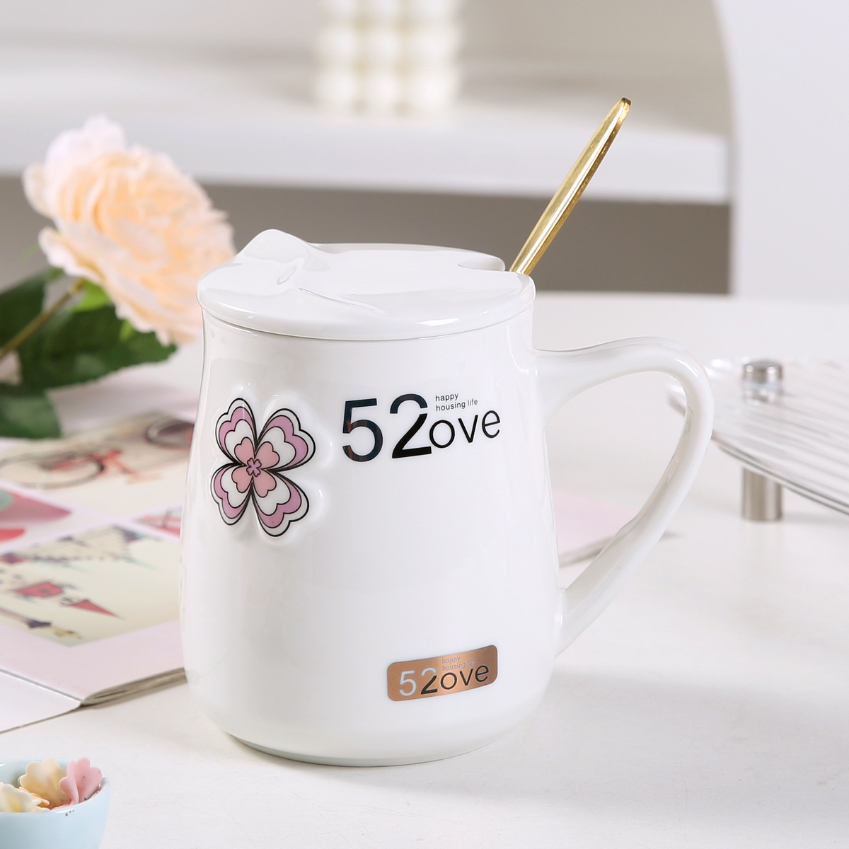 공장 도매 520 커플 컵 큰 용량 세라믹 머그잔 뚜껑 숟가락 컵 지원 인쇄 로고