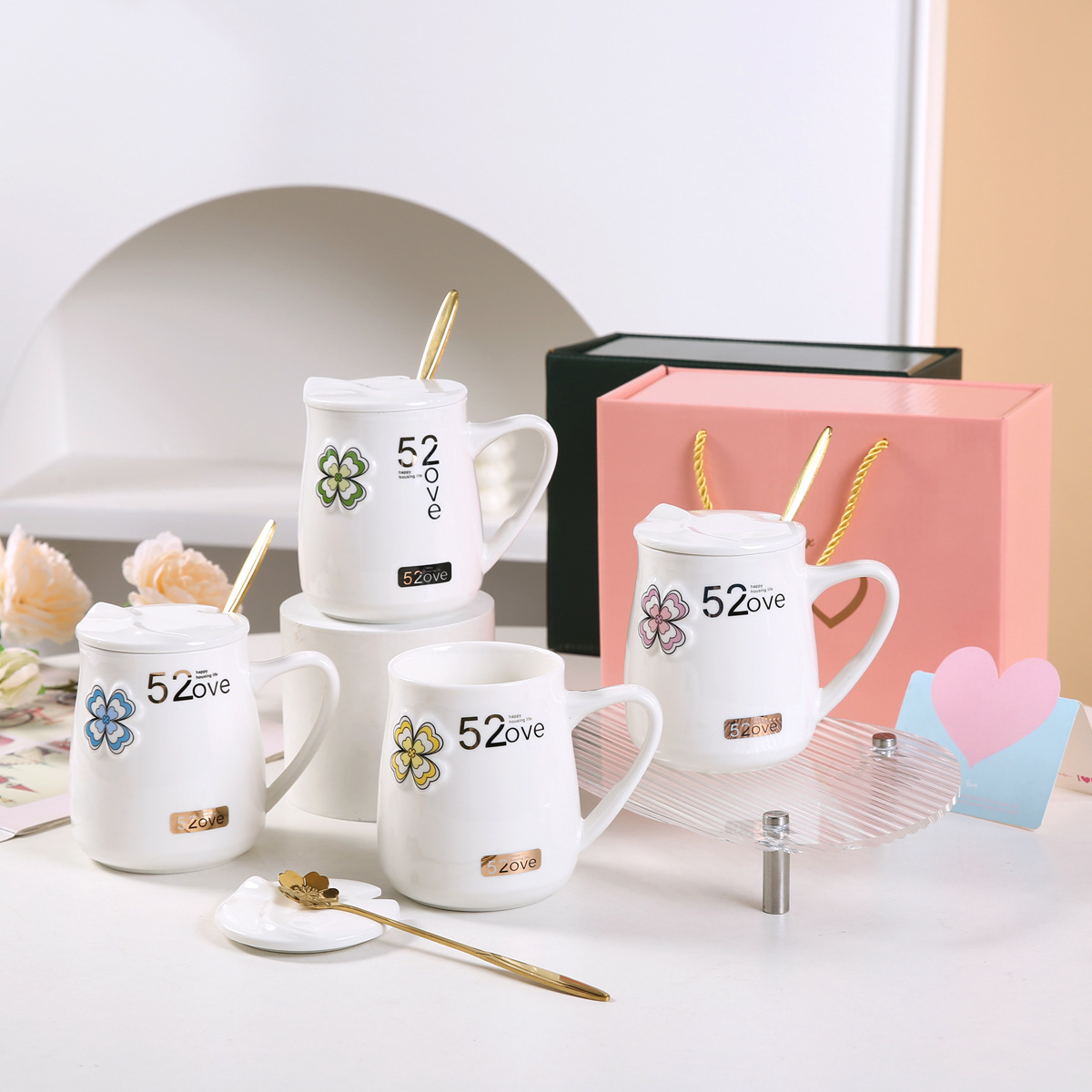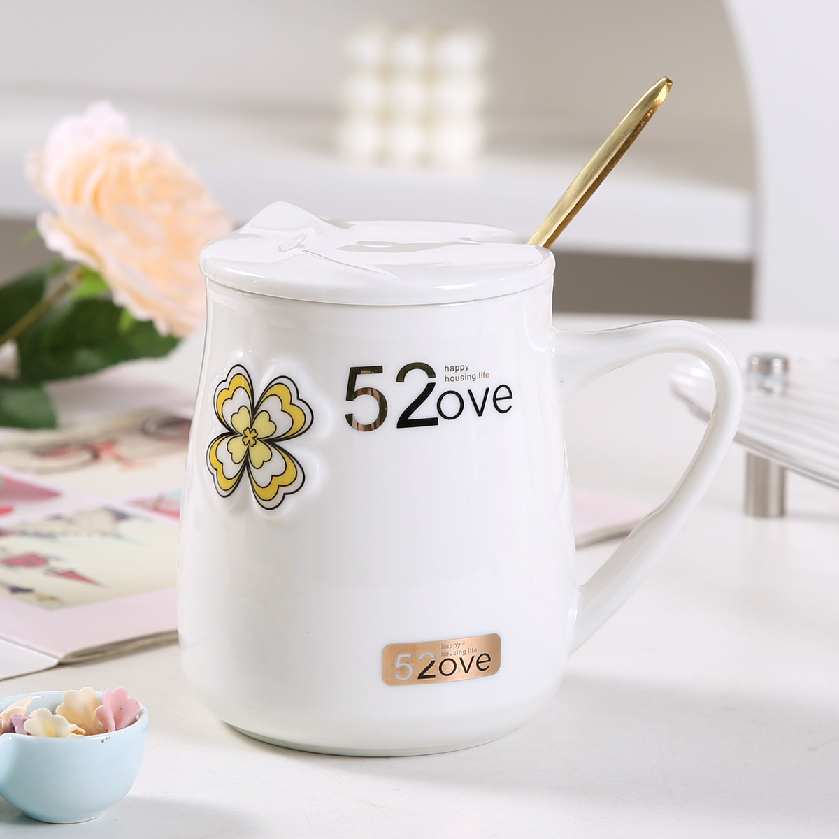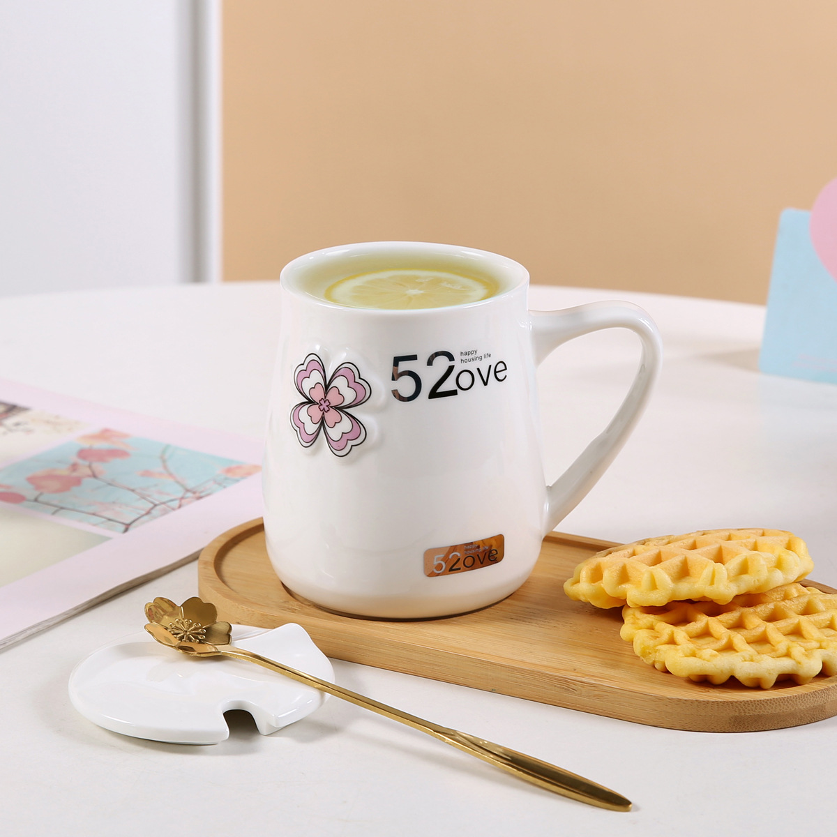 공장 도매 520 커플 컵 큰 용량 세라믹 머그잔 뚜껑 숟가락 컵 지원 인쇄 로고