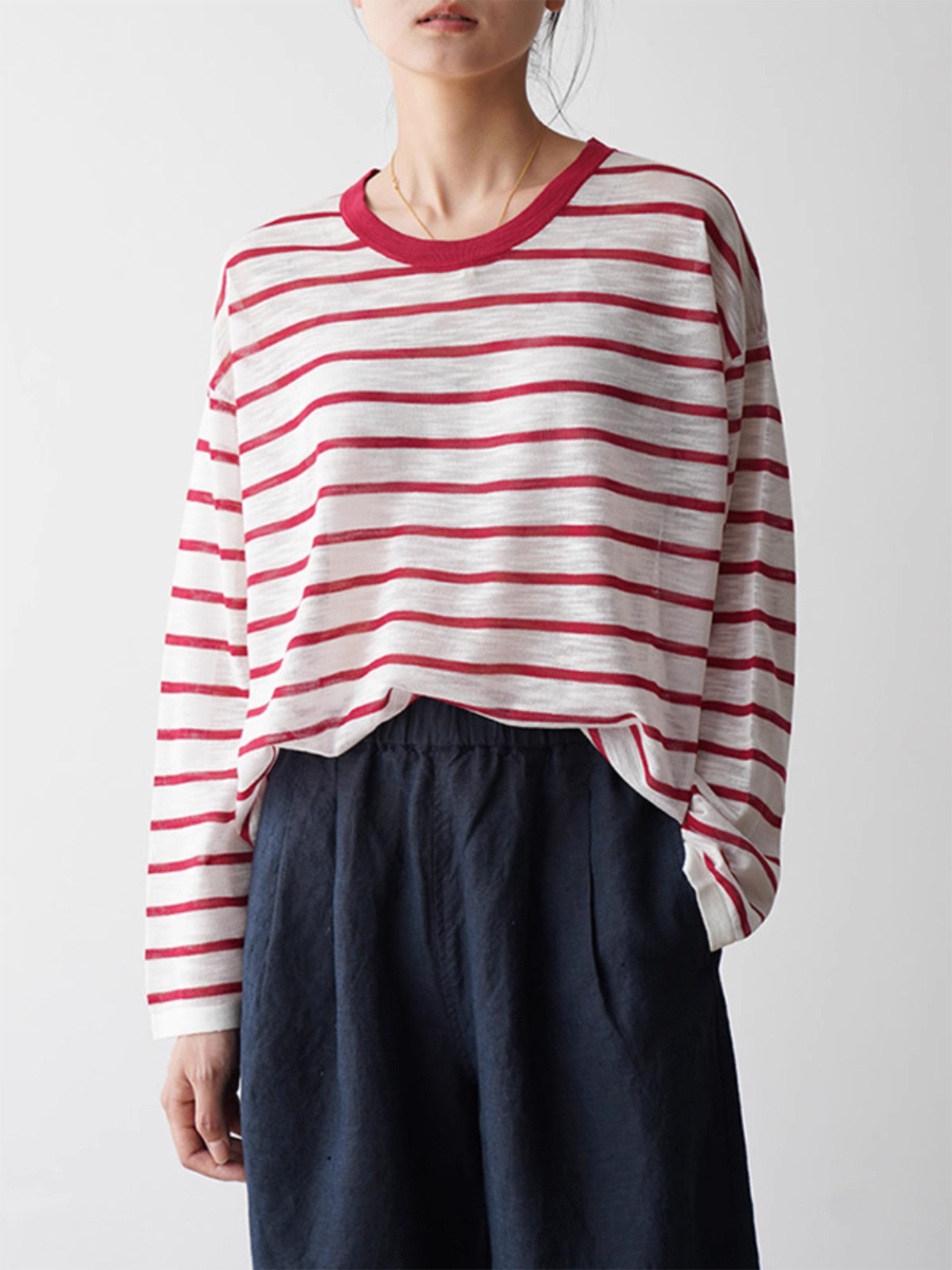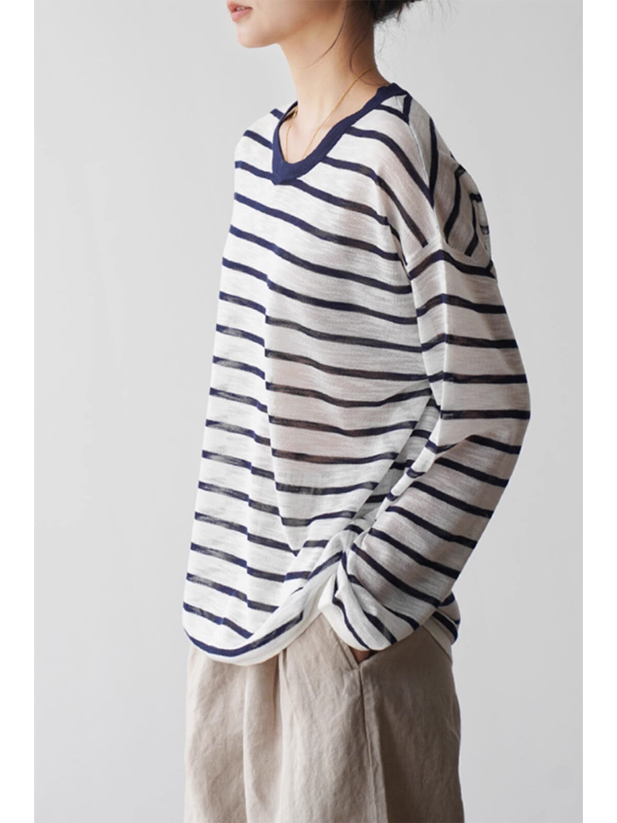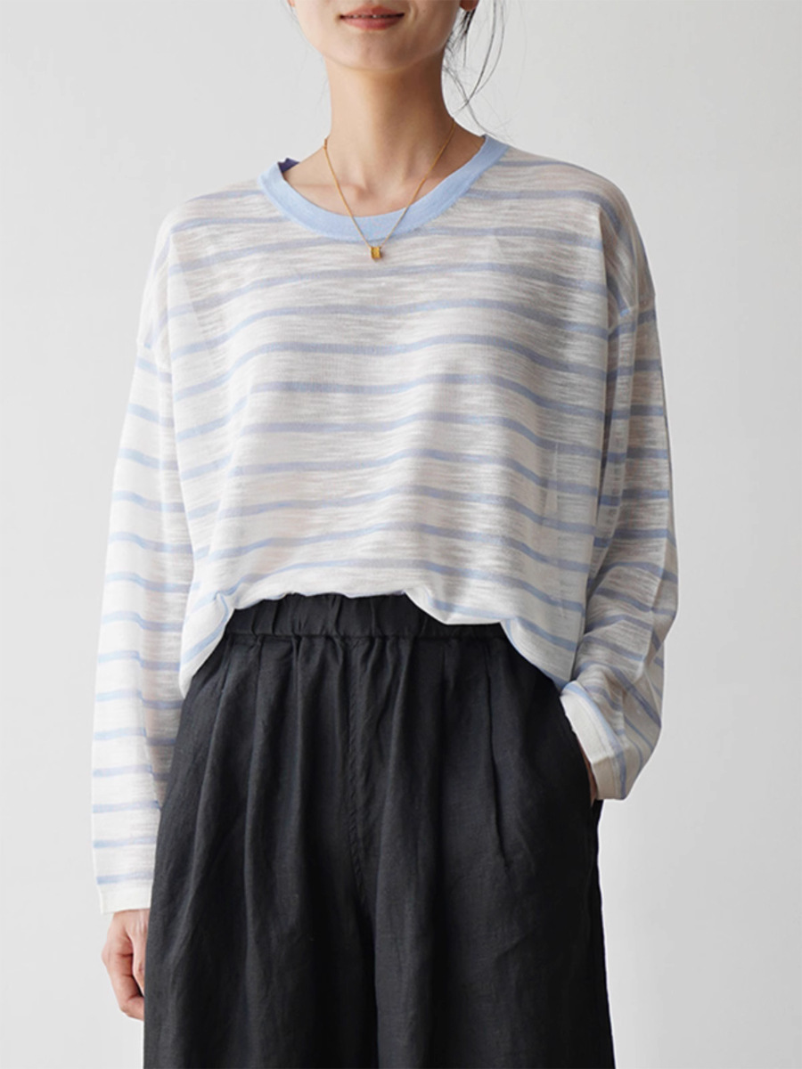 여름 썬 스크린 쿨 에어 센스 린넨 여성용 긴팔 크루 넥 스웨터 봄과 여름스토어 가기