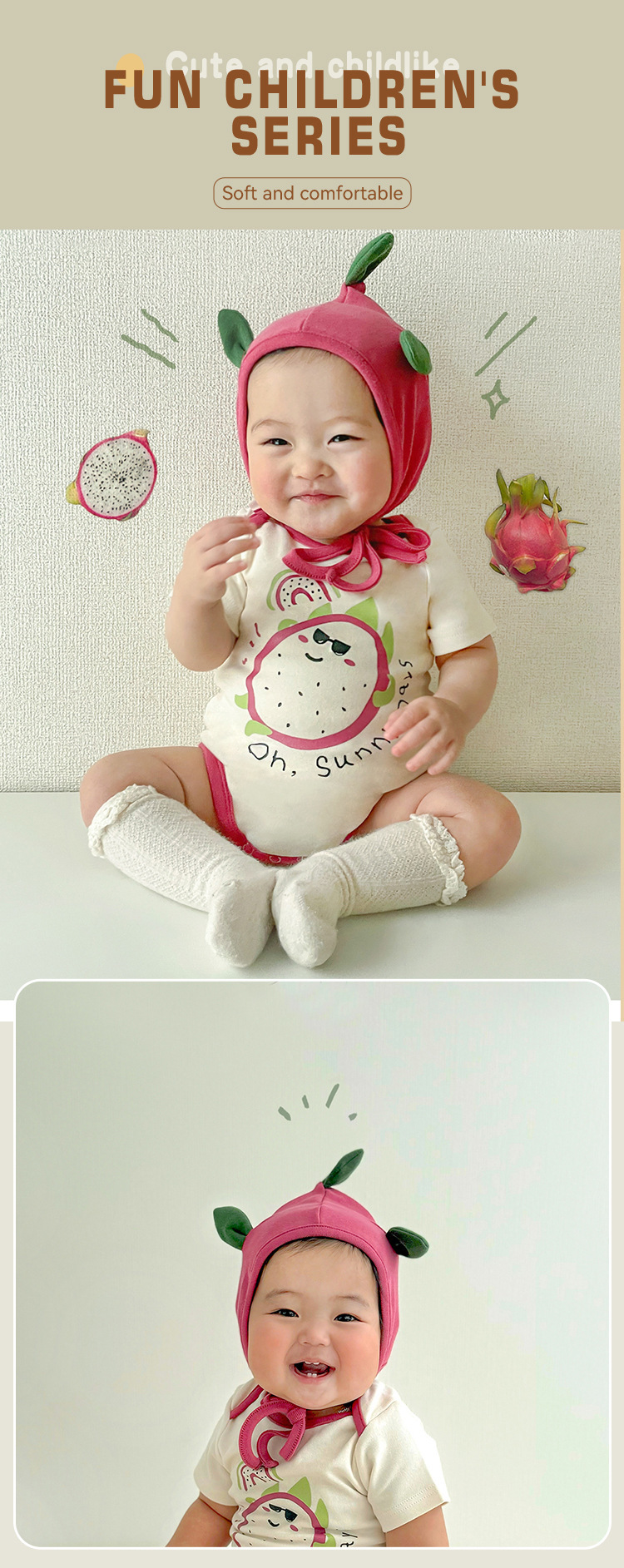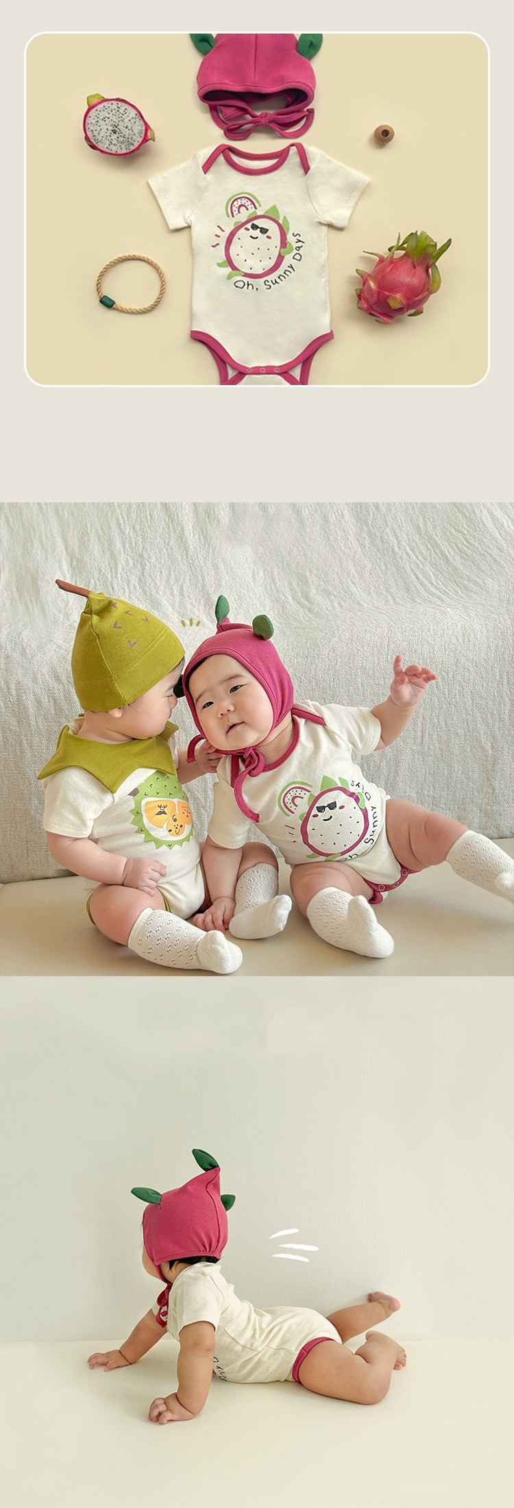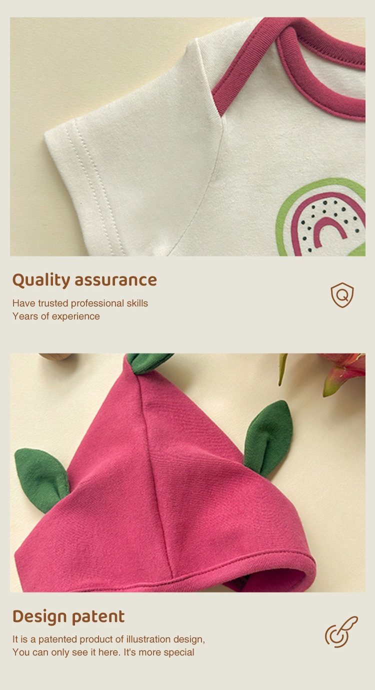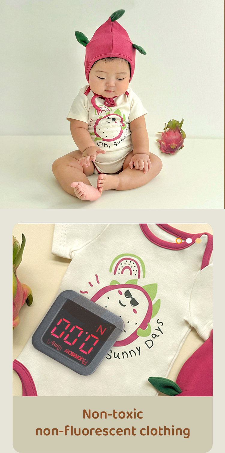 2024 아기 포장 방귀 옷 여름 새 용 과일 귀여운 짧은 소매 하 옷 아기 한 몸 삼각형 등반 옷 도매스토어 가기