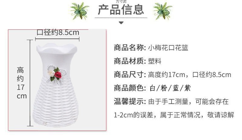 꽃 바구니 꽃병 등나무 꽃 바구니 흰색 플라스틱 꽃 바구니 인공 꽃 집 장식 꽃병 말린 꽃 꽃 꽃꽂이 꽃 바구니 공장