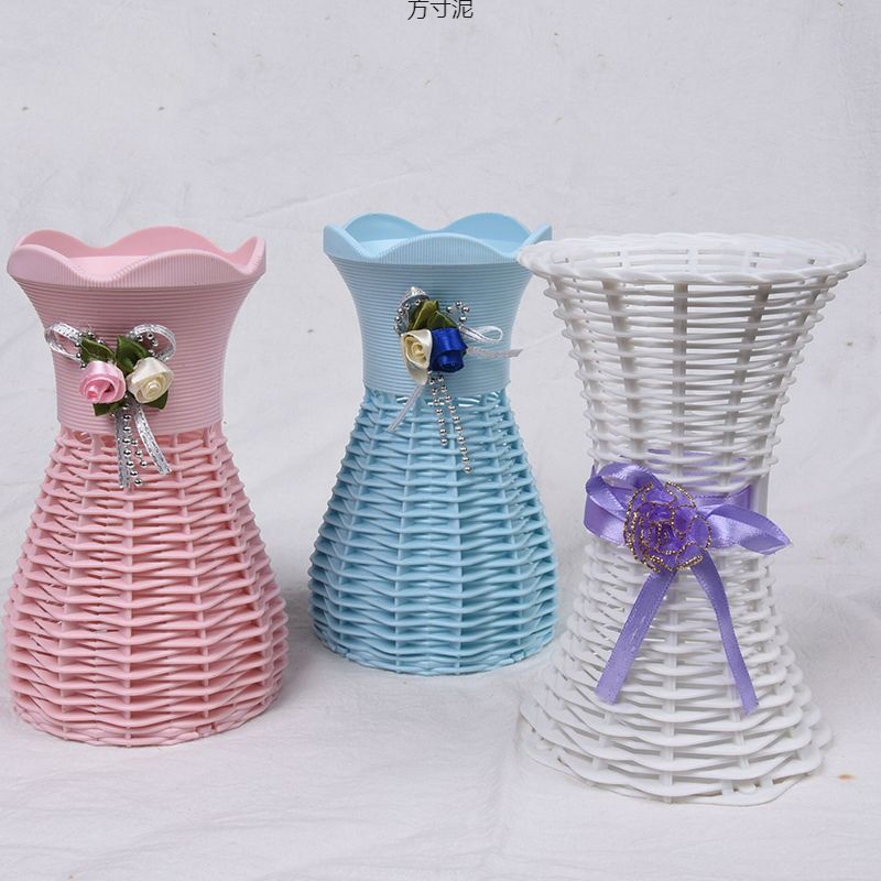 꽃 바구니 꽃병 등나무 꽃 바구니 흰색 플라스틱 꽃 바구니 인공 꽃 집 장식 꽃병 말린 꽃 꽃 꽃꽂이 꽃 바구니 공장스토어 가기