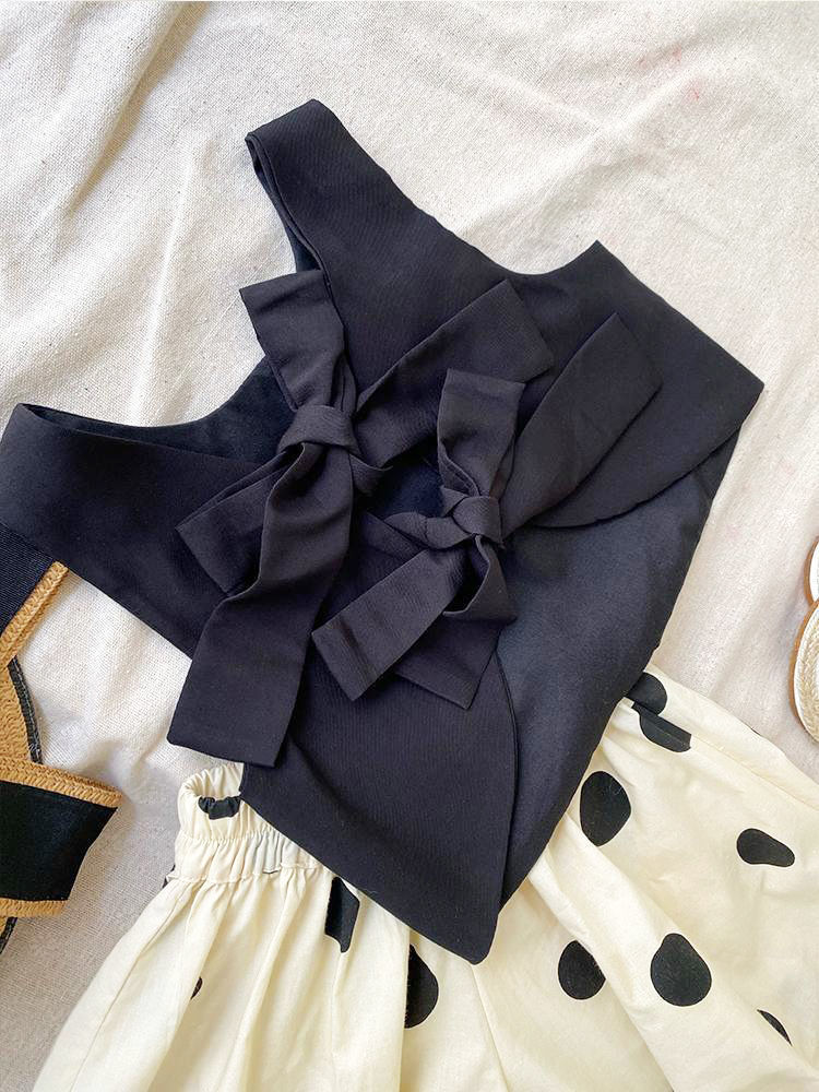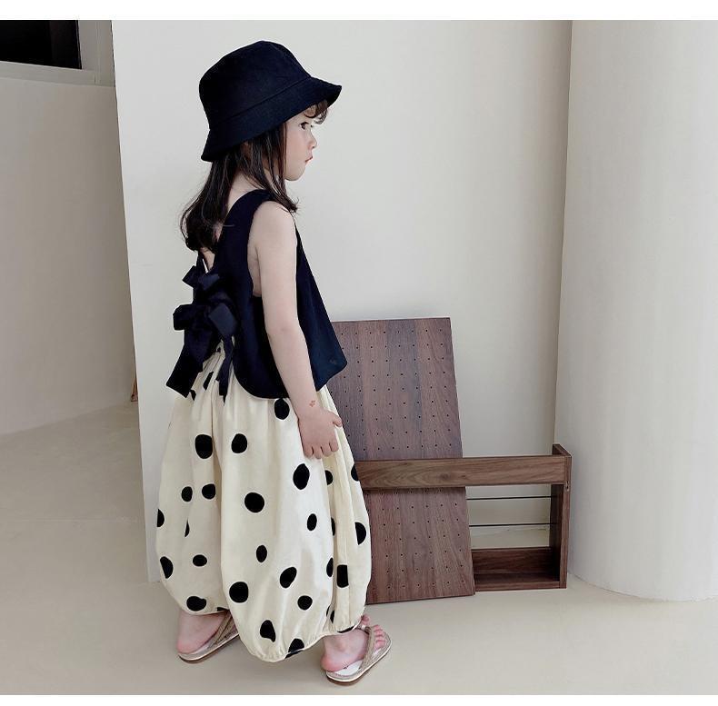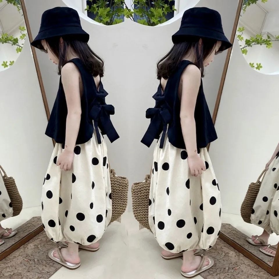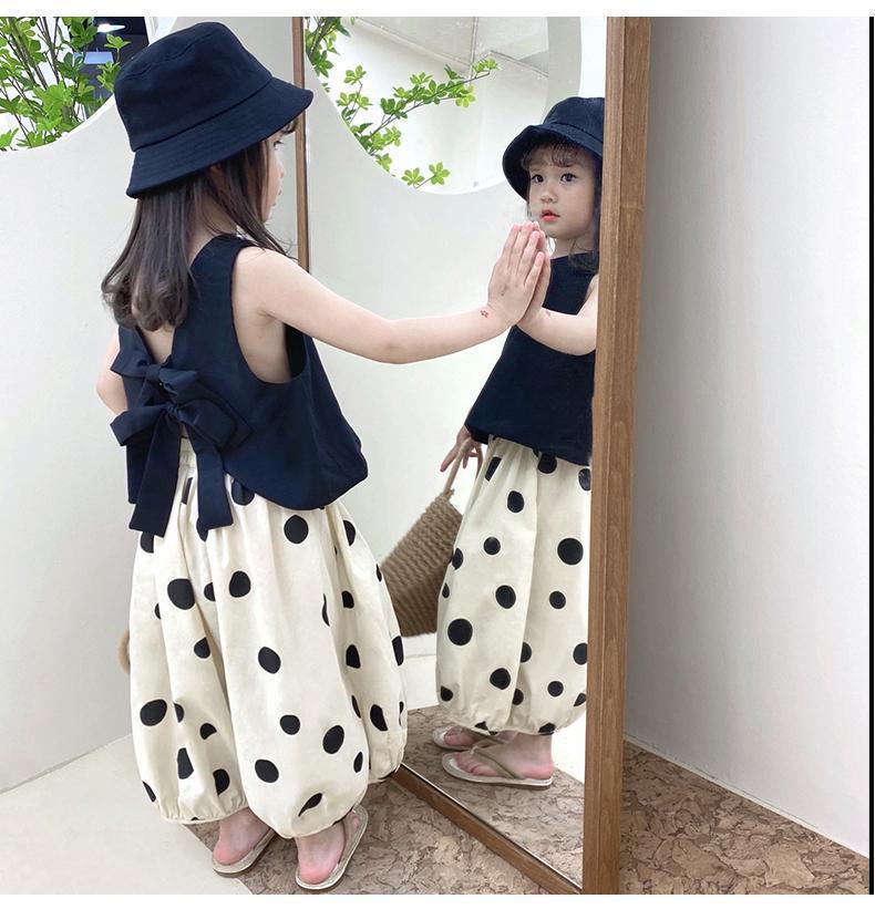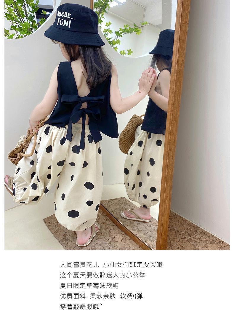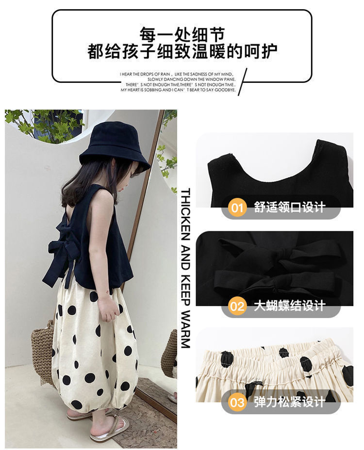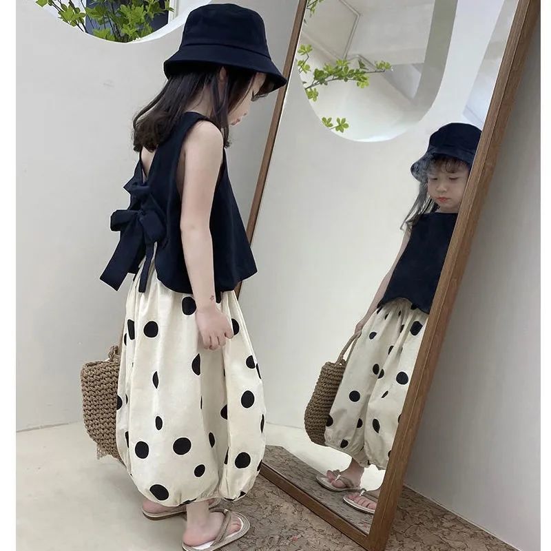 소녀 세트 여름 2024 새로운 투피스 조끼 반팔 캐주얼 랜턴 바지 얇은 웨이브 포인트 와이드 레그 트렌디 바지스토어 가기