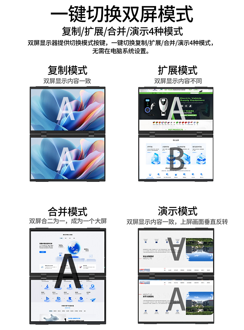 • 207.6inch *1080 상단 및 하단 듀얼 스크린 IPS/Type-C+HDMI 인터페이스