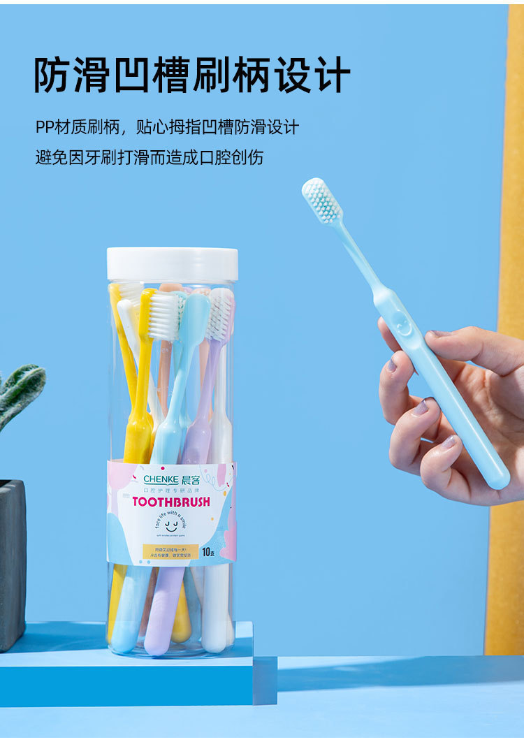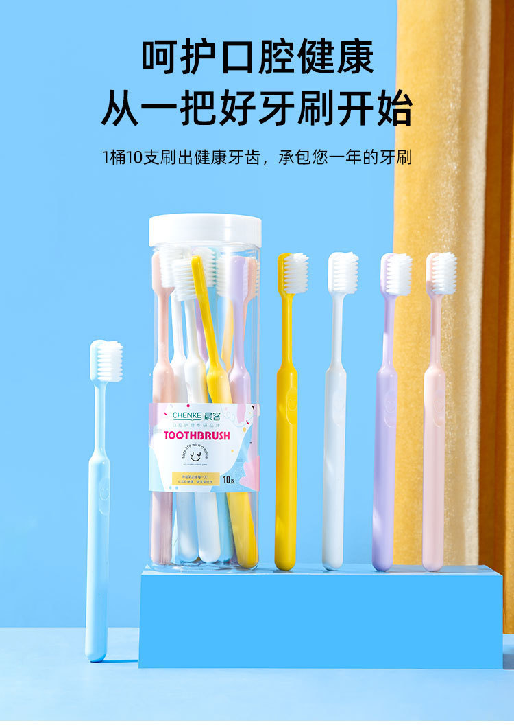 캔디 컬러 스마일리 배럴 칫솔 부드러운 머리 작은 머리 가구 성인 커플 하이 엔드 10 팩 칫솔 공장 도매스토어 가기