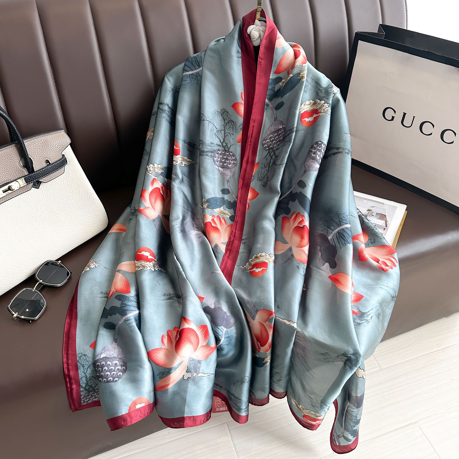 공장 직접 실크 스카프 긴 하이 엔드 센스 패션 인쇄 큰 브랜드 스카프 여름 얇은 선 스크린 목도리