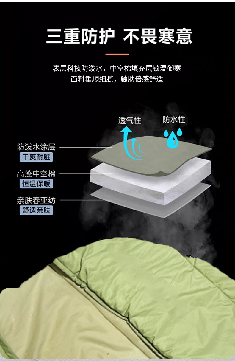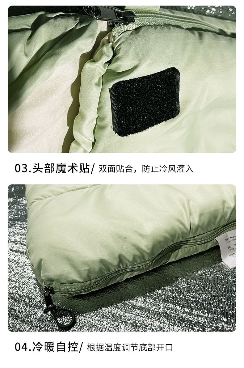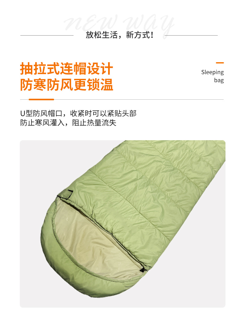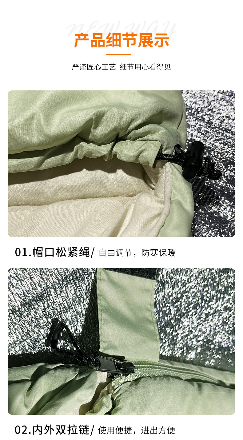 Chunya Spinning Envelope Sleeping Bag 사계절 긴급 구호 단일 따뜻한 슬리핑 백 후드 휴대용 성인 캠핑 슬리핑 백스토어 가기