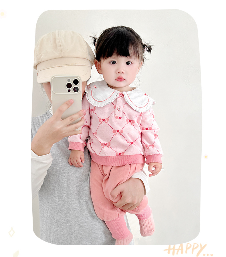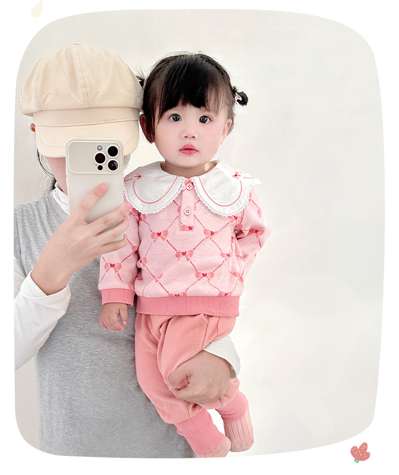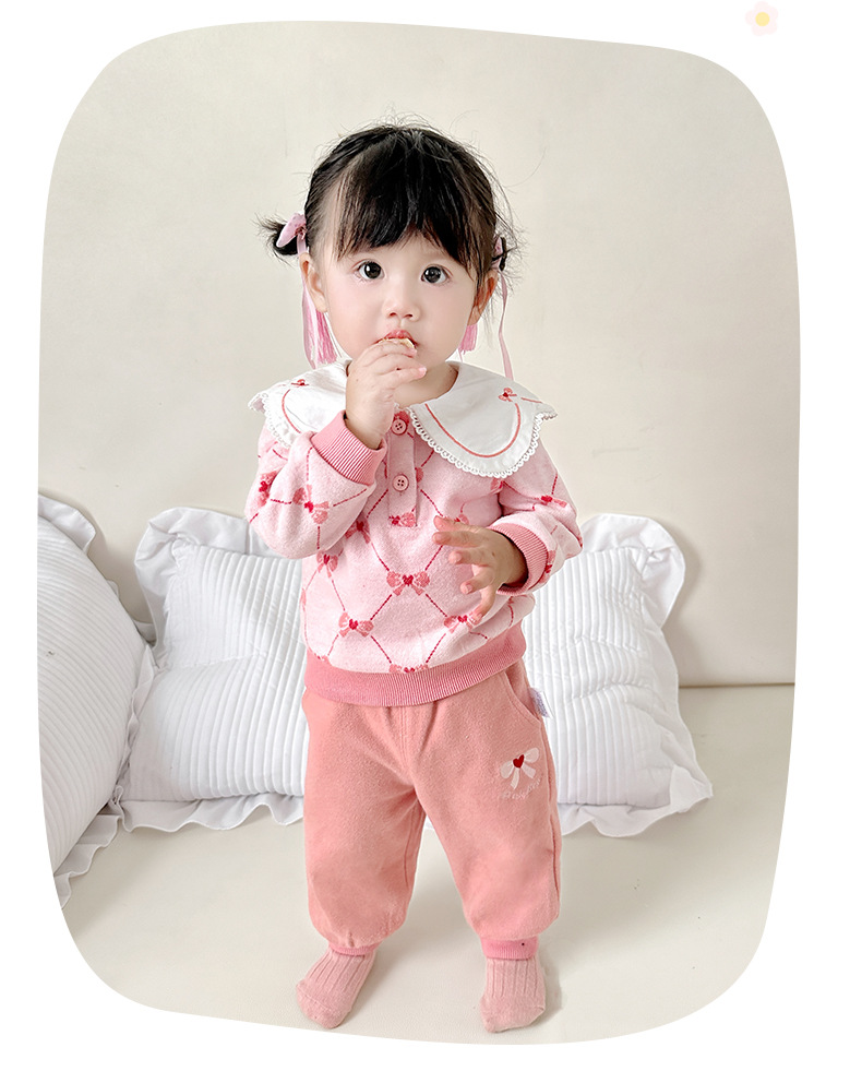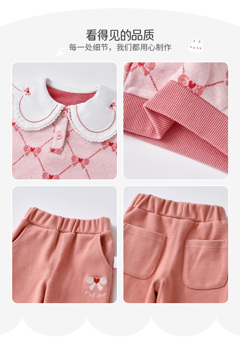 2024 봄과 가을 캐주얼 투피스 가을 귀여운 세트 소녀 아기 긴 소매 땀 바지 세트 3813스토어 가기