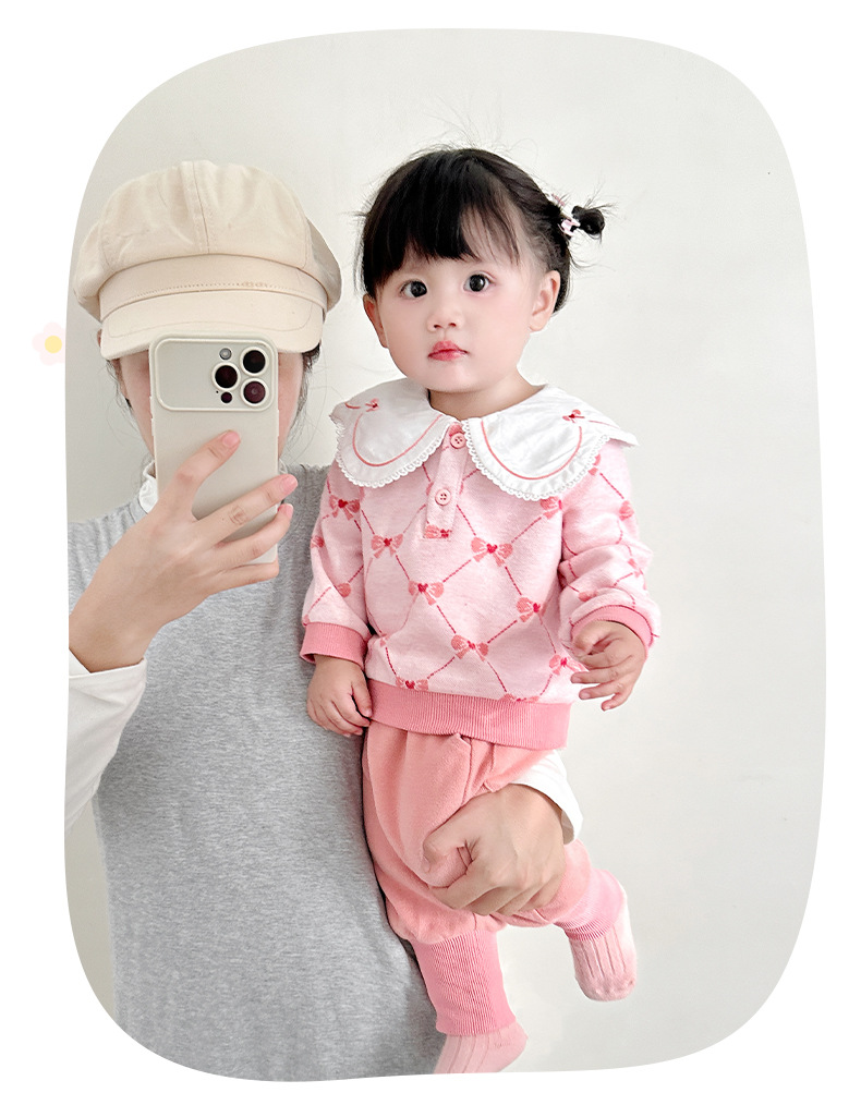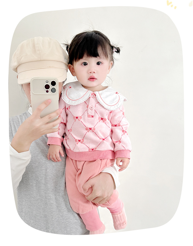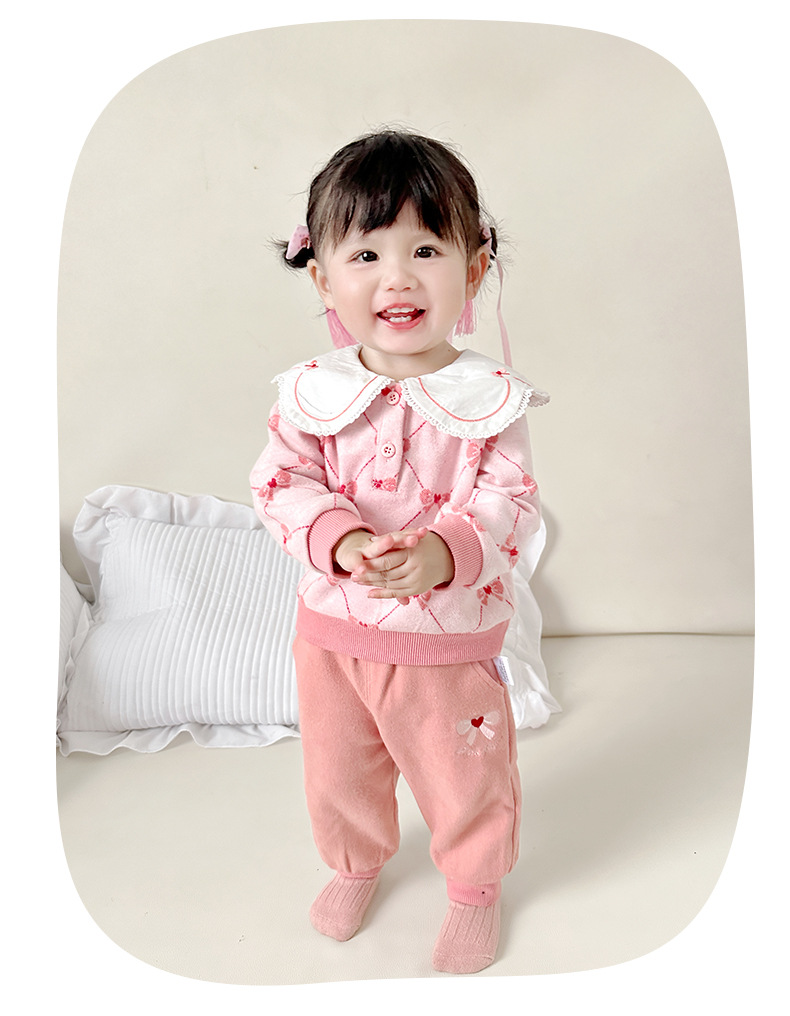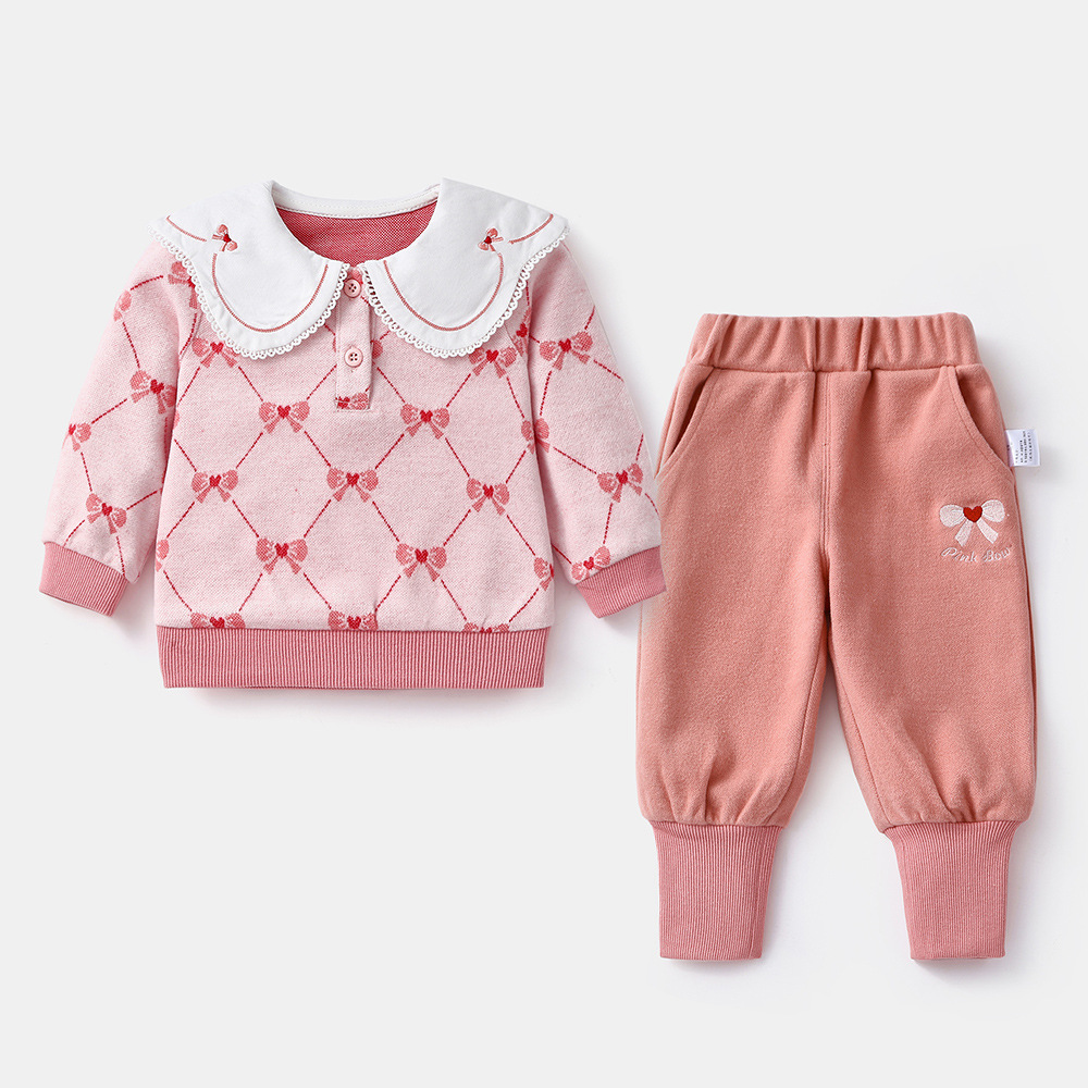 2024 봄과 가을 캐주얼 투피스 가을 귀여운 세트 소녀 아기 긴 소매 땀 바지 세트 3813스토어 가기