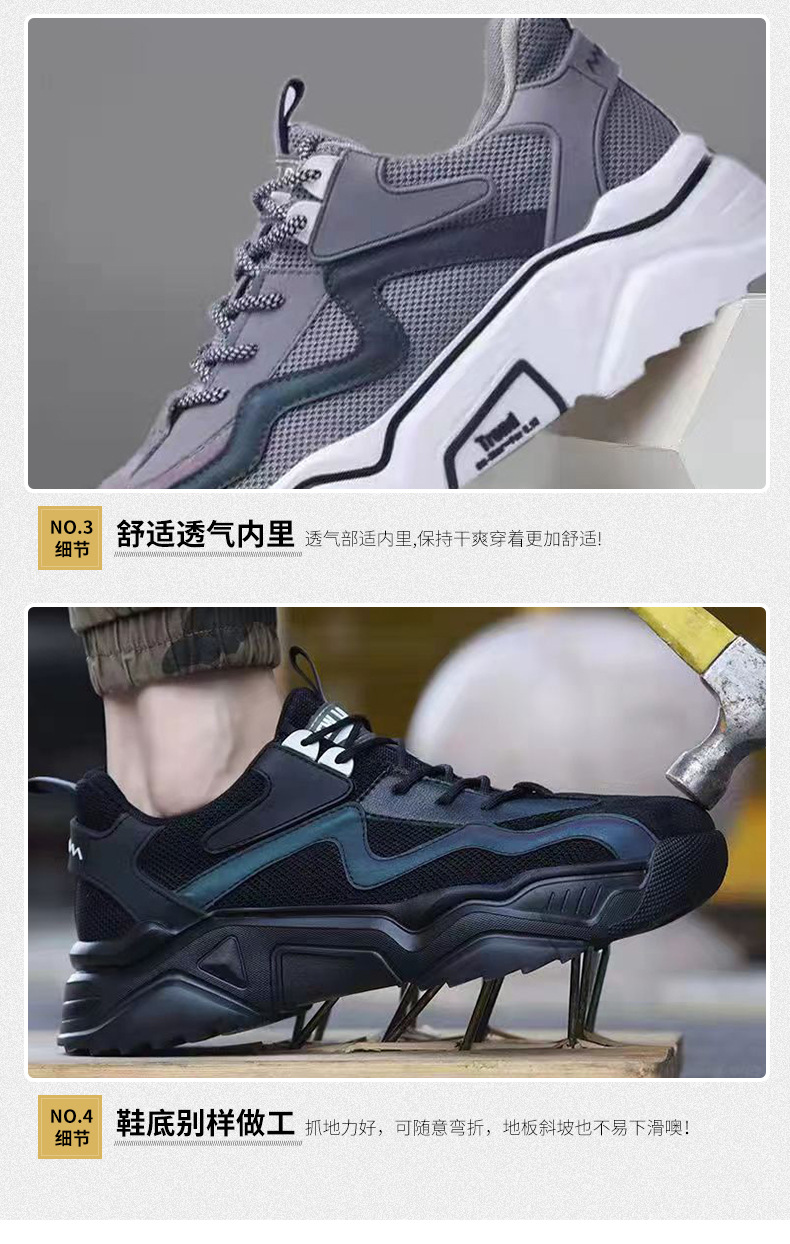 남성용 노동 보호화, 충격 방지, 펑크 방지, 통기성, 스틸 토, 건설 현장용, 미끄럼 방지, 보호 기능, 통기성, 경량 작업화