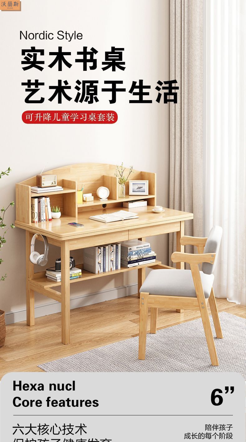 현대 간단한 모든 솔리드 우드 어린이 학습 데스크 의자 북유럽 침실 책상 초등 및 중등 학생 홈 컴퓨터 책상