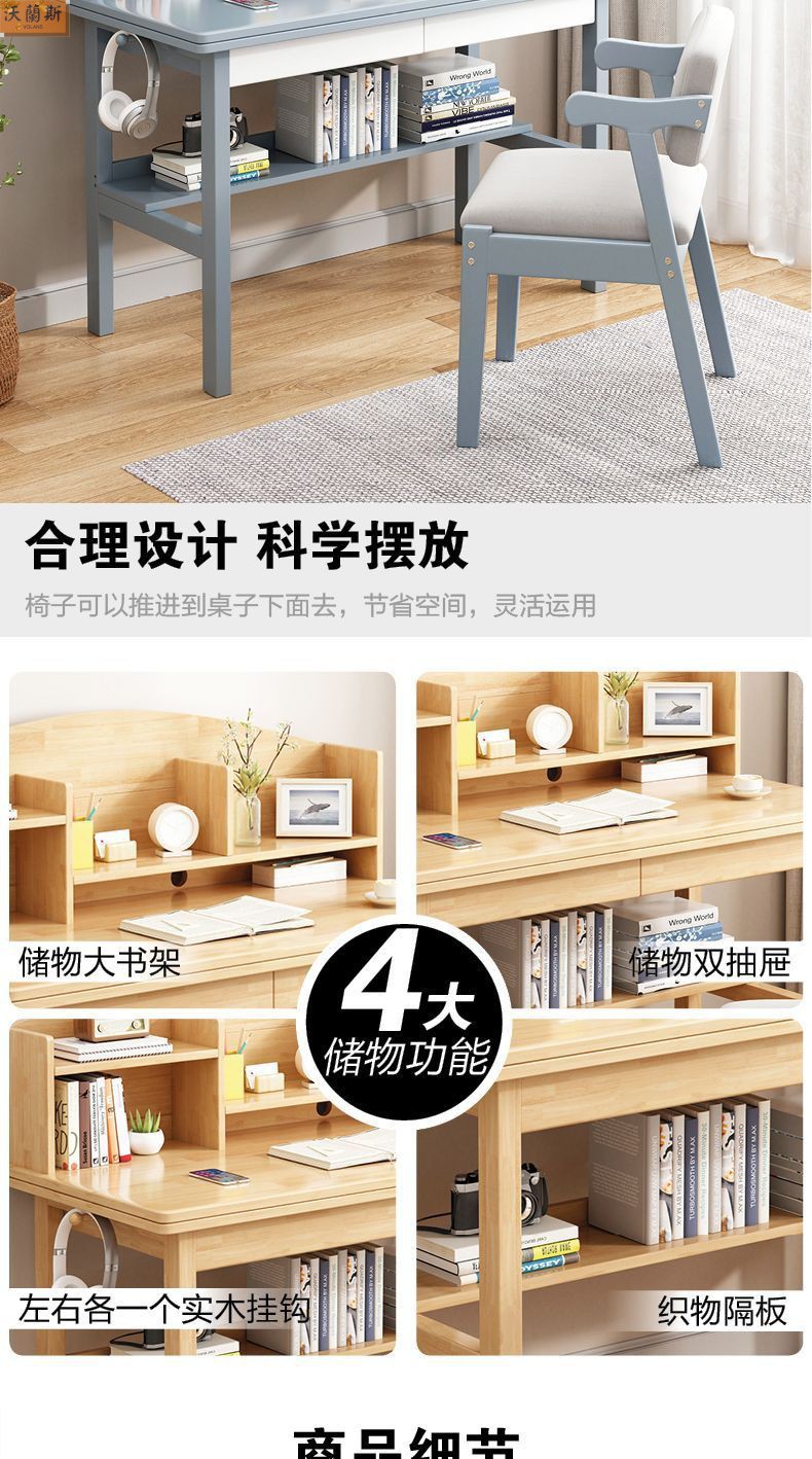 현대 간단한 모든 솔리드 우드 어린이 학습 데스크 의자 북유럽 침실 책상 초등 및 중등 학생 홈 컴퓨터 책상스토어 가기