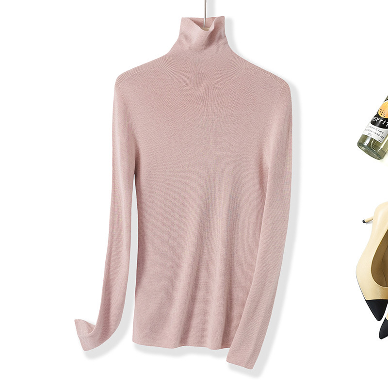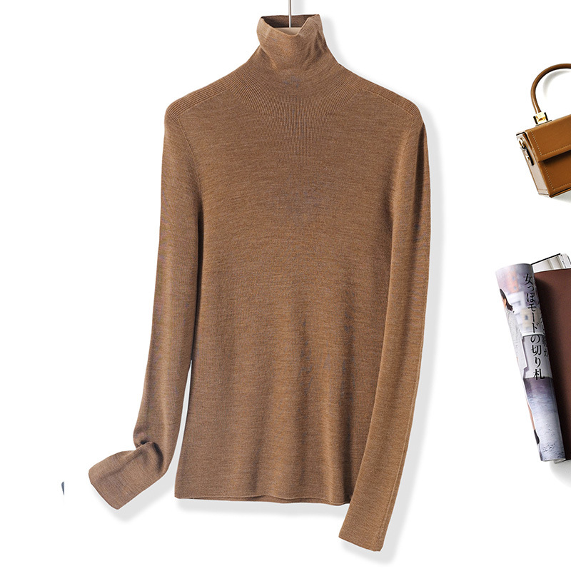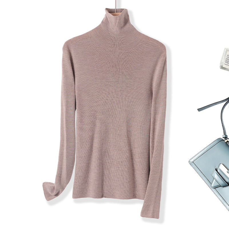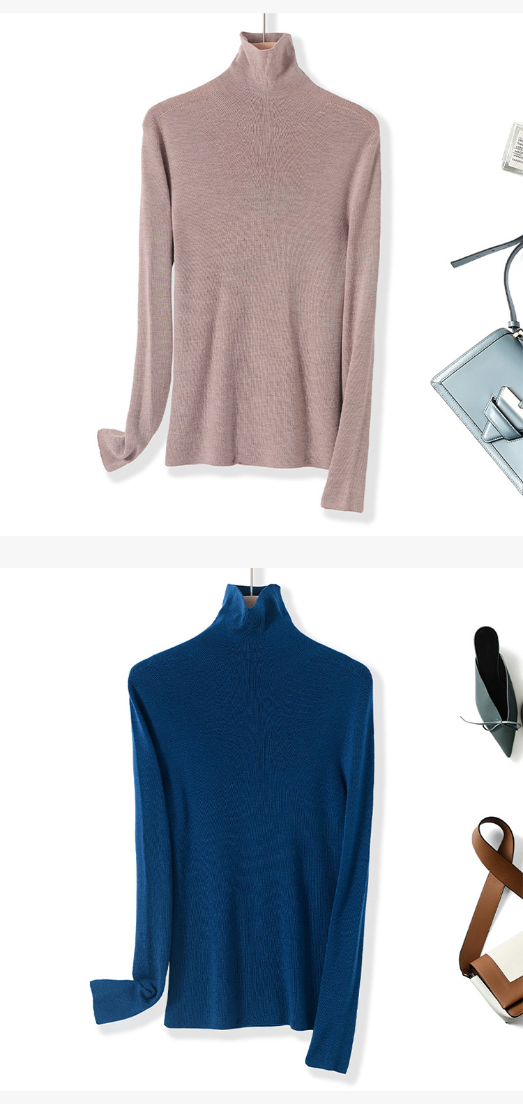 세탁기 워스티드 파인 100 울 모의 터틀넥 니트 베이스 셔츠 여성용 얇은 풀오버 스웨터