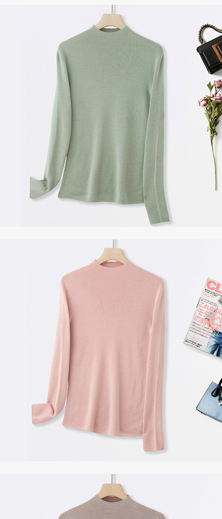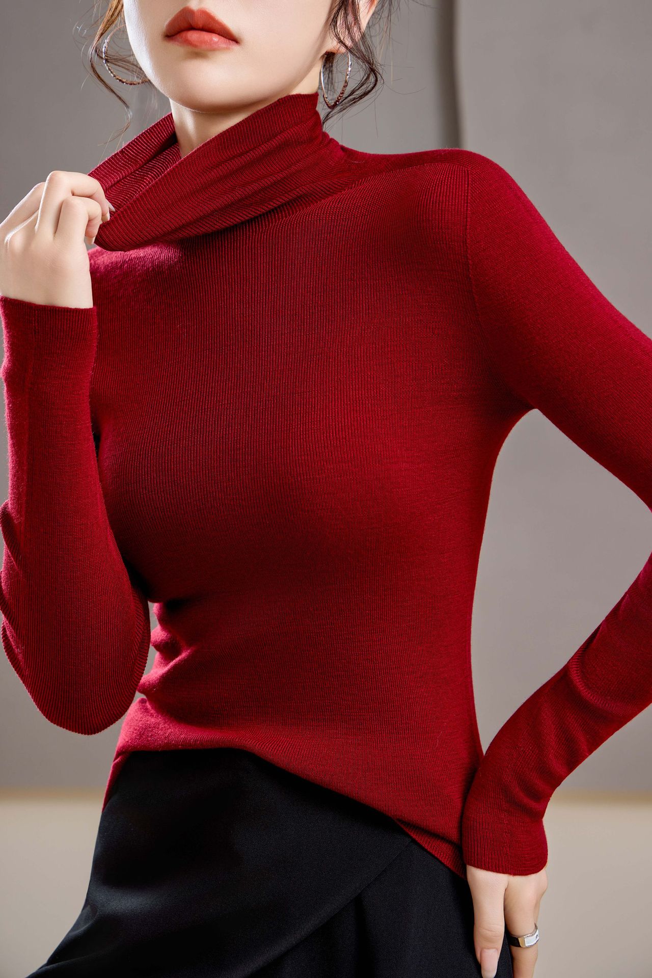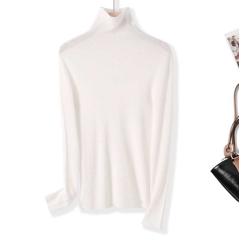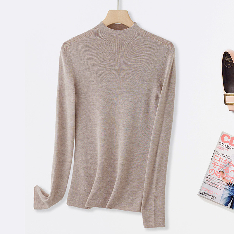 세탁기 워스티드 파인 100 울 모의 터틀넥 니트 베이스 셔츠 여성용 얇은 풀오버 스웨터