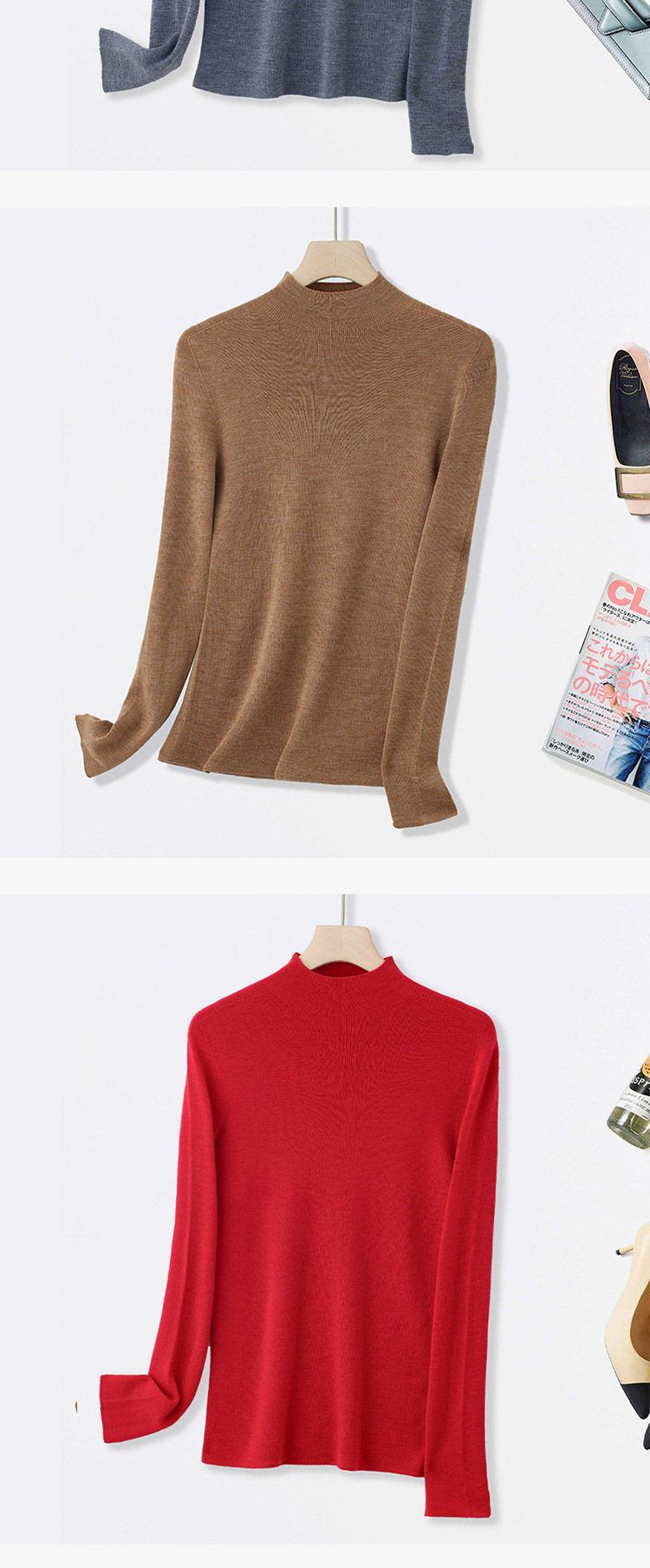 세탁기 워스티드 파인 100 울 모의 터틀넥 니트 베이스 셔츠 여성용 얇은 풀오버 스웨터스토어 가기