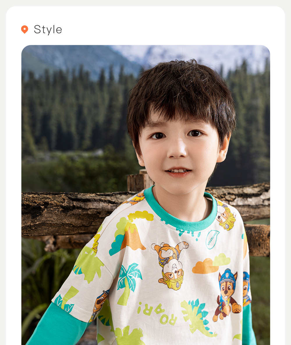 강아지 팀 소년용 긴팔 티셔츠 투피스 스타일 어린이 면 상의 봄 가을 신상 남아용 베이스 셔츠 소년용 트렌디스토어 가기