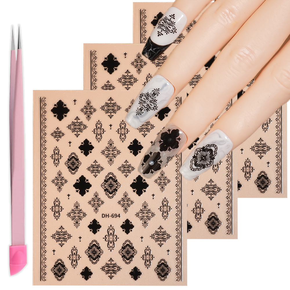 Redanco 새로운 3D 그물 붉은 폭발 DIY 패턴 네일 아트 스티커 접착 네일 데칼 도매 DH-694스토어 가기