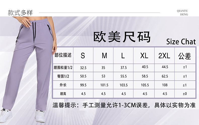 유럽과 미국 여성의 UPF50 캐주얼 바지 방수 선 스크린 등산 바지 달리기 스포츠 지퍼 포켓 통근스토어 가기