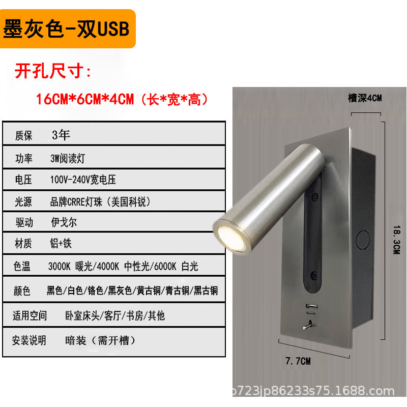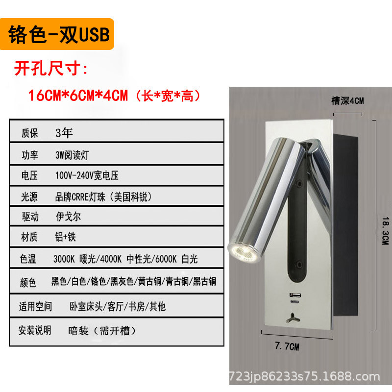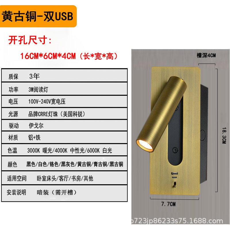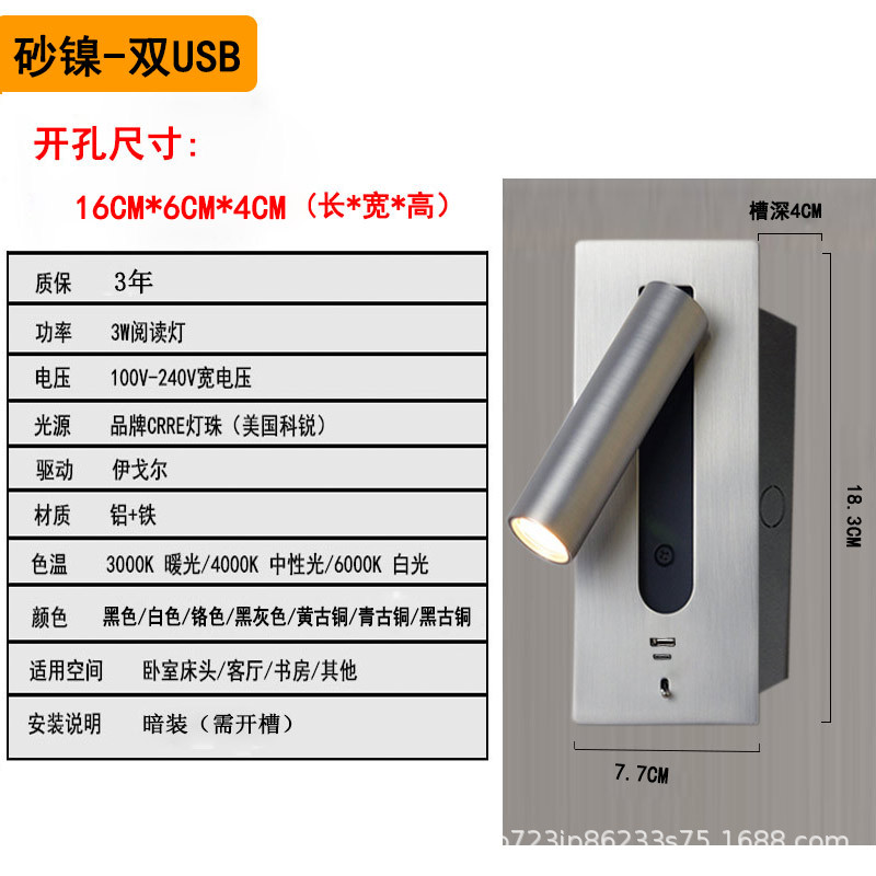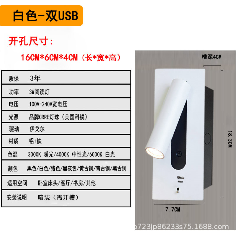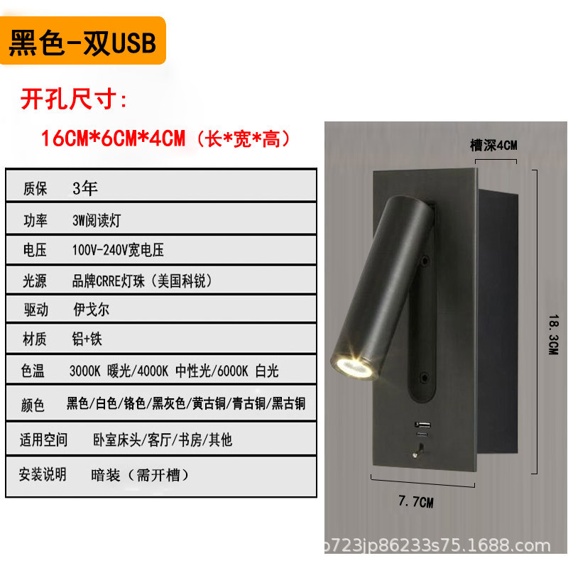 북유럽 듀얼 USB 임베디드 LED 새로운 중국 벽 램프 350 도 창조적 인 호텔 침실 독서 램프