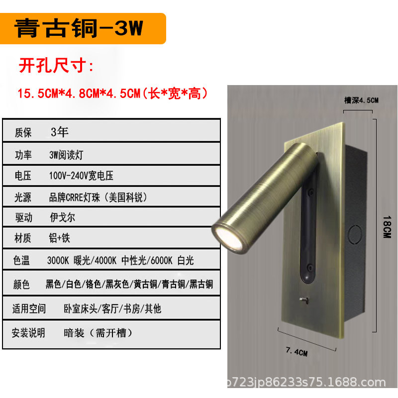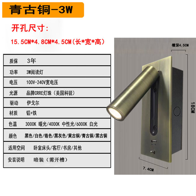 북유럽 듀얼 USB 임베디드 LED 새로운 중국 벽 램프 350 도 창조적 인 호텔 침실 독서 램프스토어 가기
