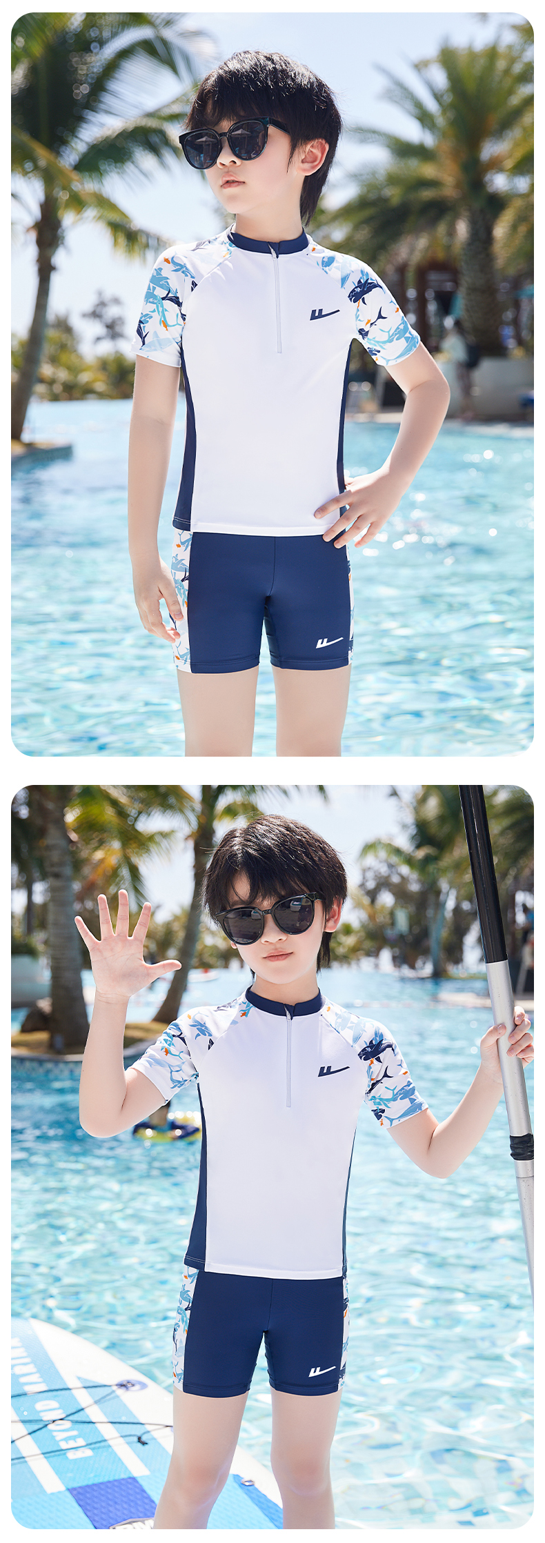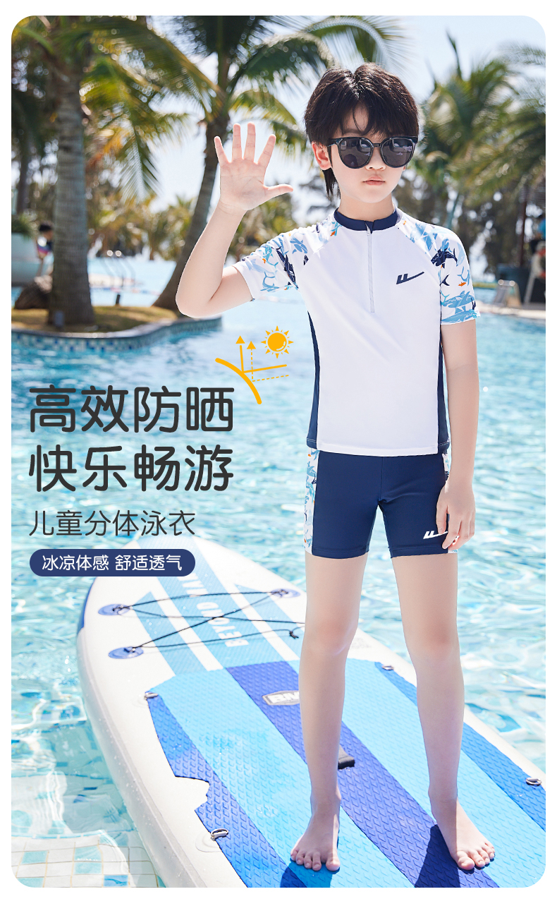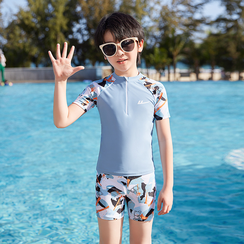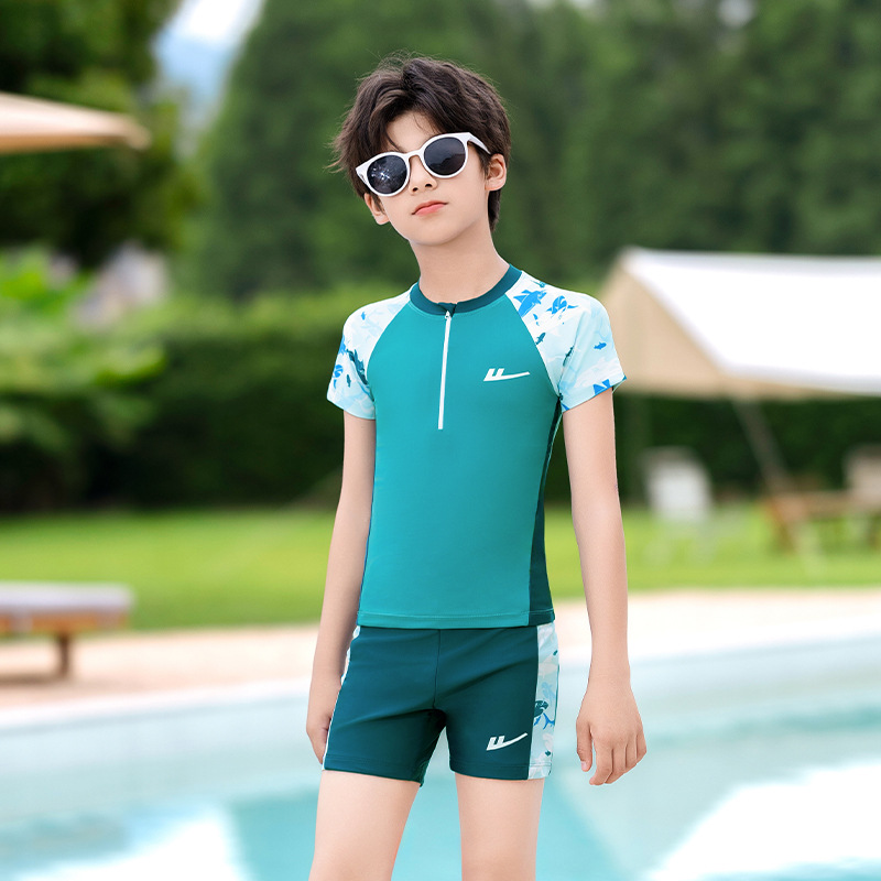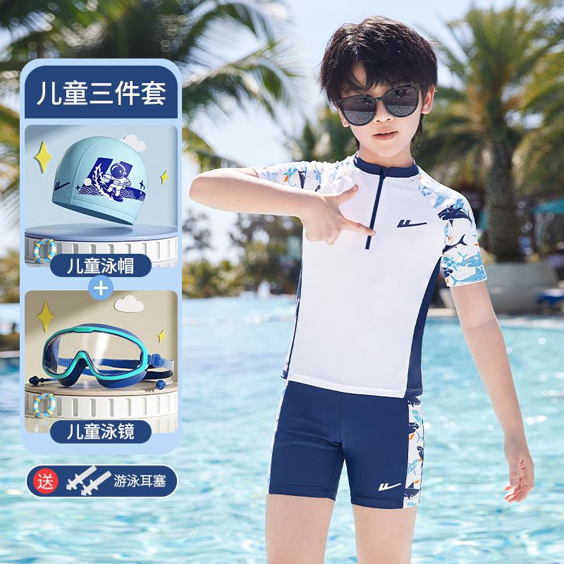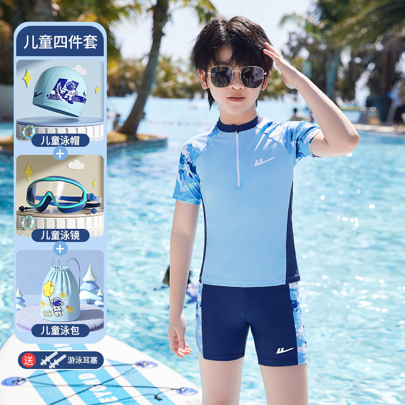 Huili 어린이 수영복 소년 중 · 대형 어린이 2024 새로운 소년 분할 수영복 십대 수영 트렁크 세트