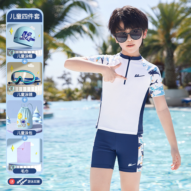 Huili 어린이 수영복 소년 중 · 대형 어린이 2024 새로운 소년 분할 수영복 십대 수영 트렁크 세트스토어 가기