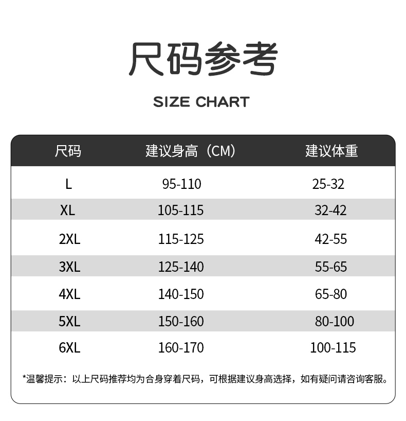 • 6XL (키 160-170cm, 몸무게 50-60kg 권장)