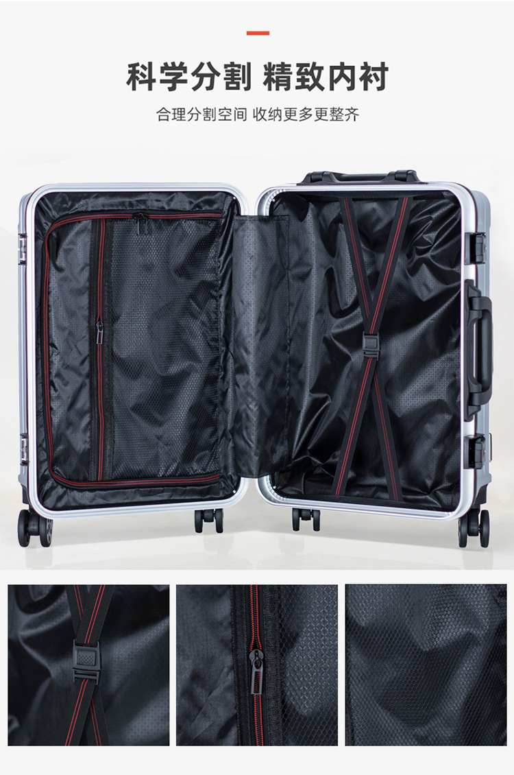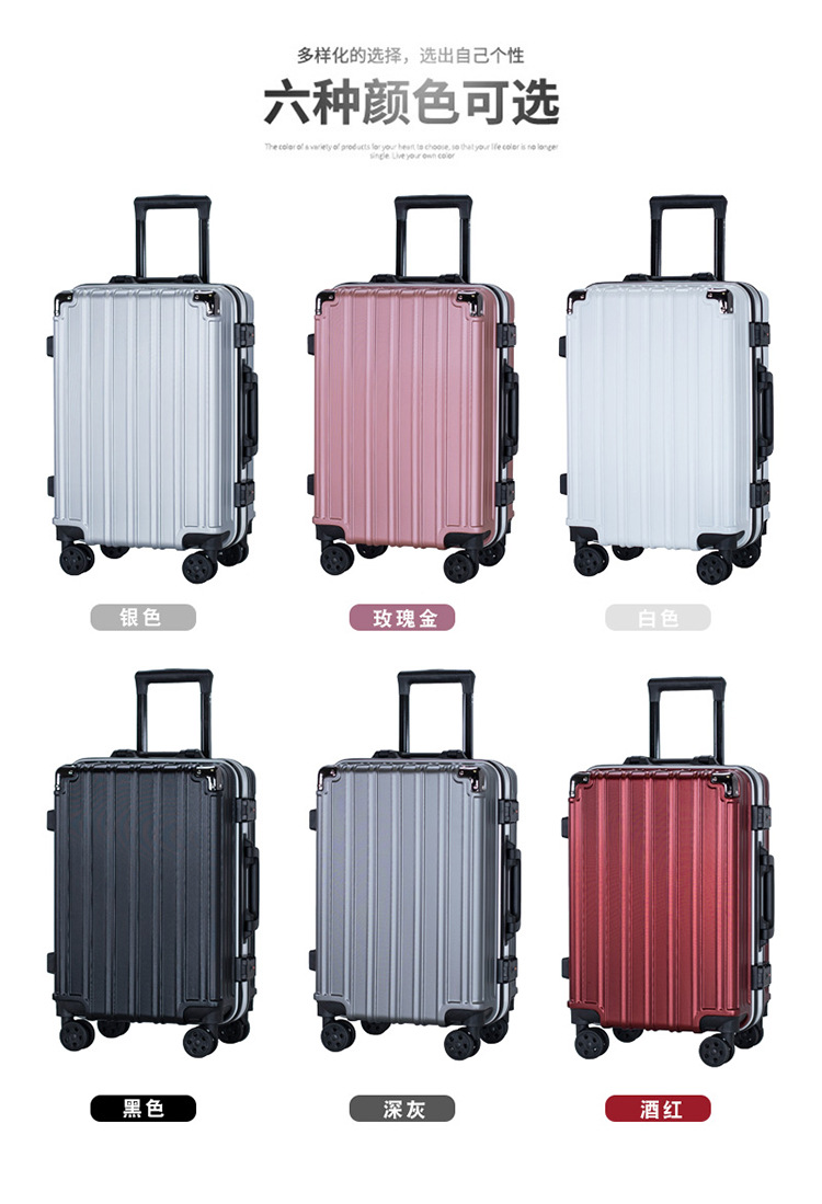 알루미늄 프레임 트롤리 케이스 선물 가방 20 인치 음소거 유니버설 더블 로우 휠 완전히 밀봉 된 라이닝