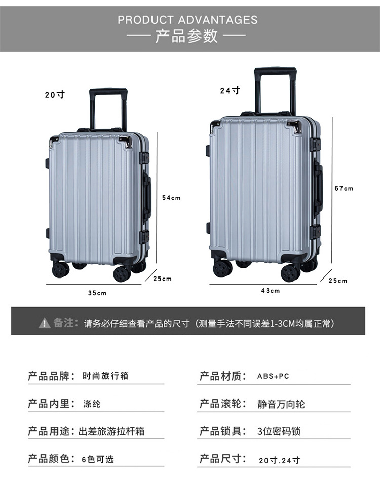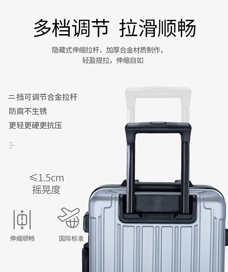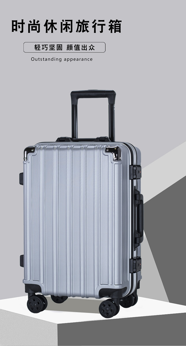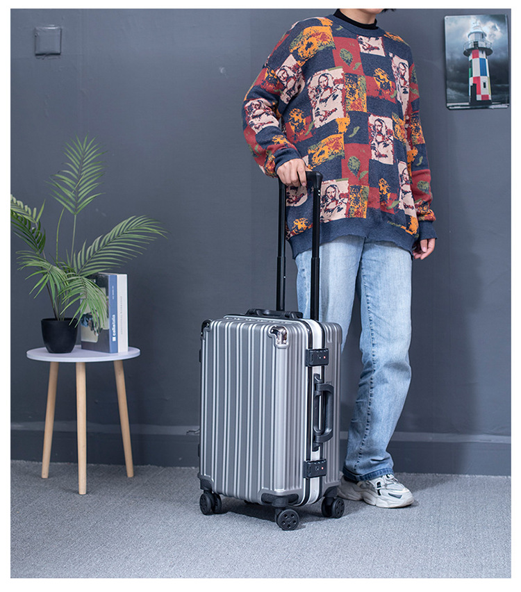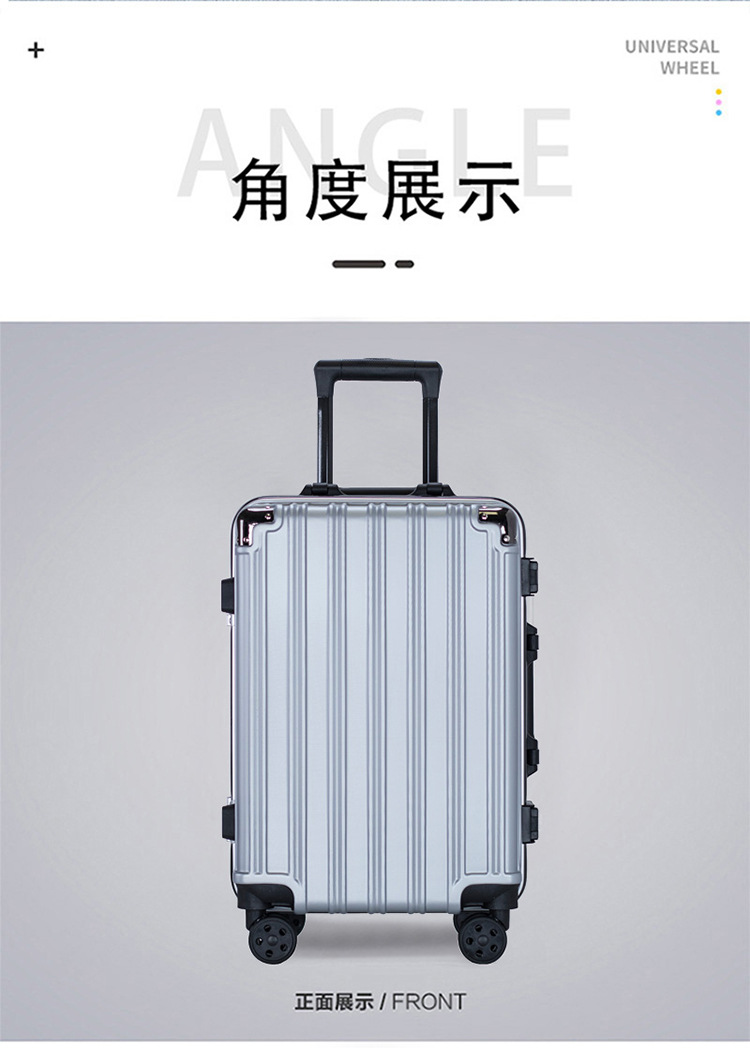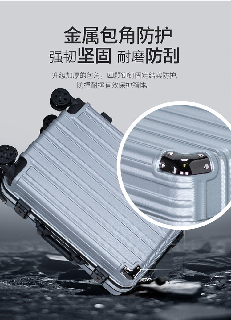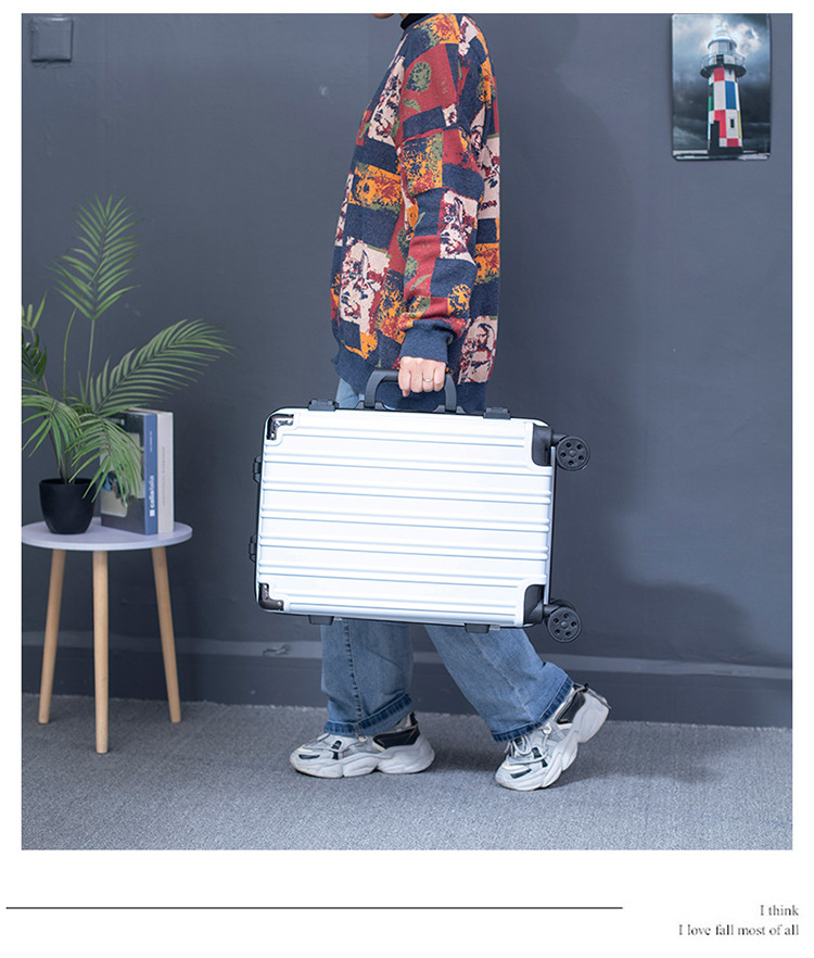 알루미늄 프레임 트롤리 케이스 선물 가방 20 인치 음소거 유니버설 더블 로우 휠 완전히 밀봉 된 라이닝스토어 가기