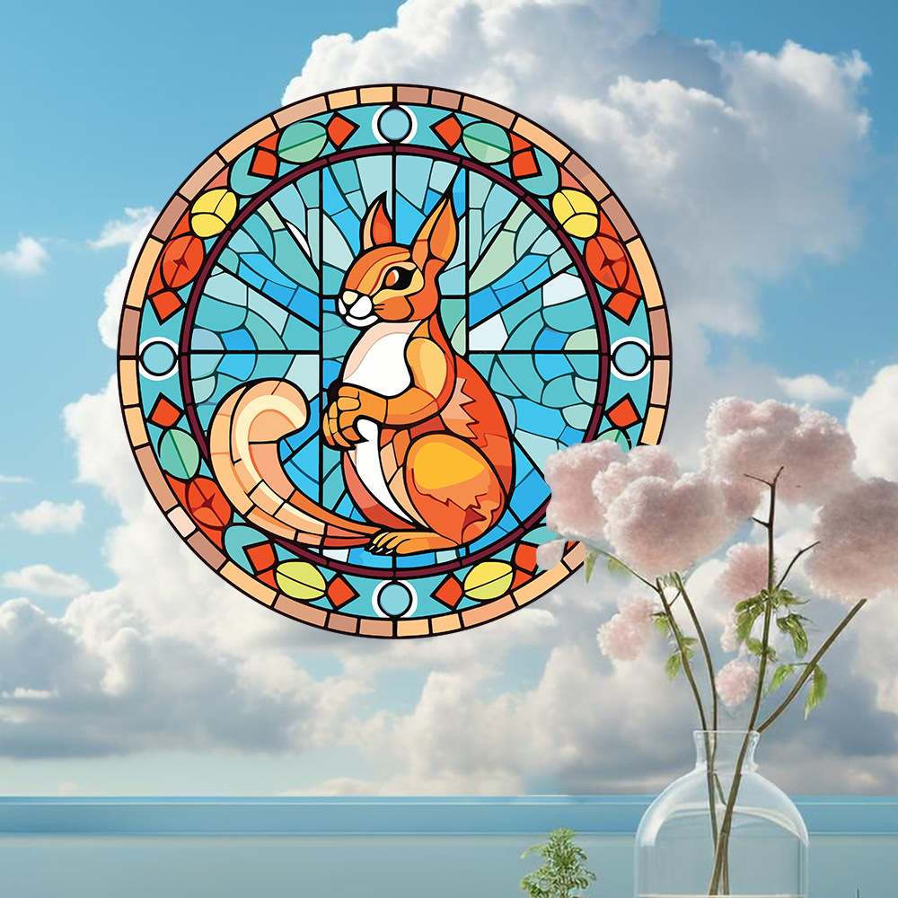 Yiyao JD3309 기하학적 귀여운 다람쥐 유리 스티커 쇼핑몰 유리 도어 및 창 장식 접착제가없는 정전기 스티커